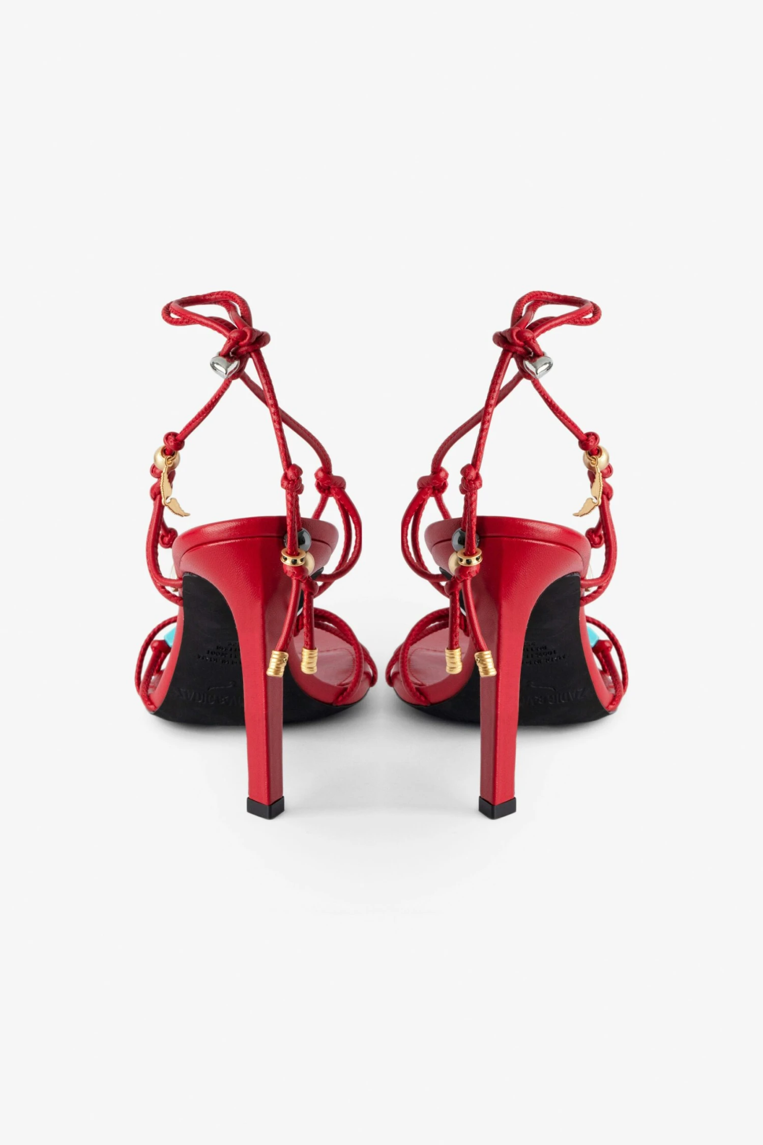 – Women’s Power red smooth leather sandals – Adjustable tied crossover straps with charms – Heel height: cm – Made in Portugal The Leather Working Group/LWG is a membership organization comprised of brands, suppliers, leather manufacturers and other stakeholders within the leather manufacturing industry. The group has developed an auditing program which certifies leather manufacturing facilities based on their environmental compliance and performance capabilities
