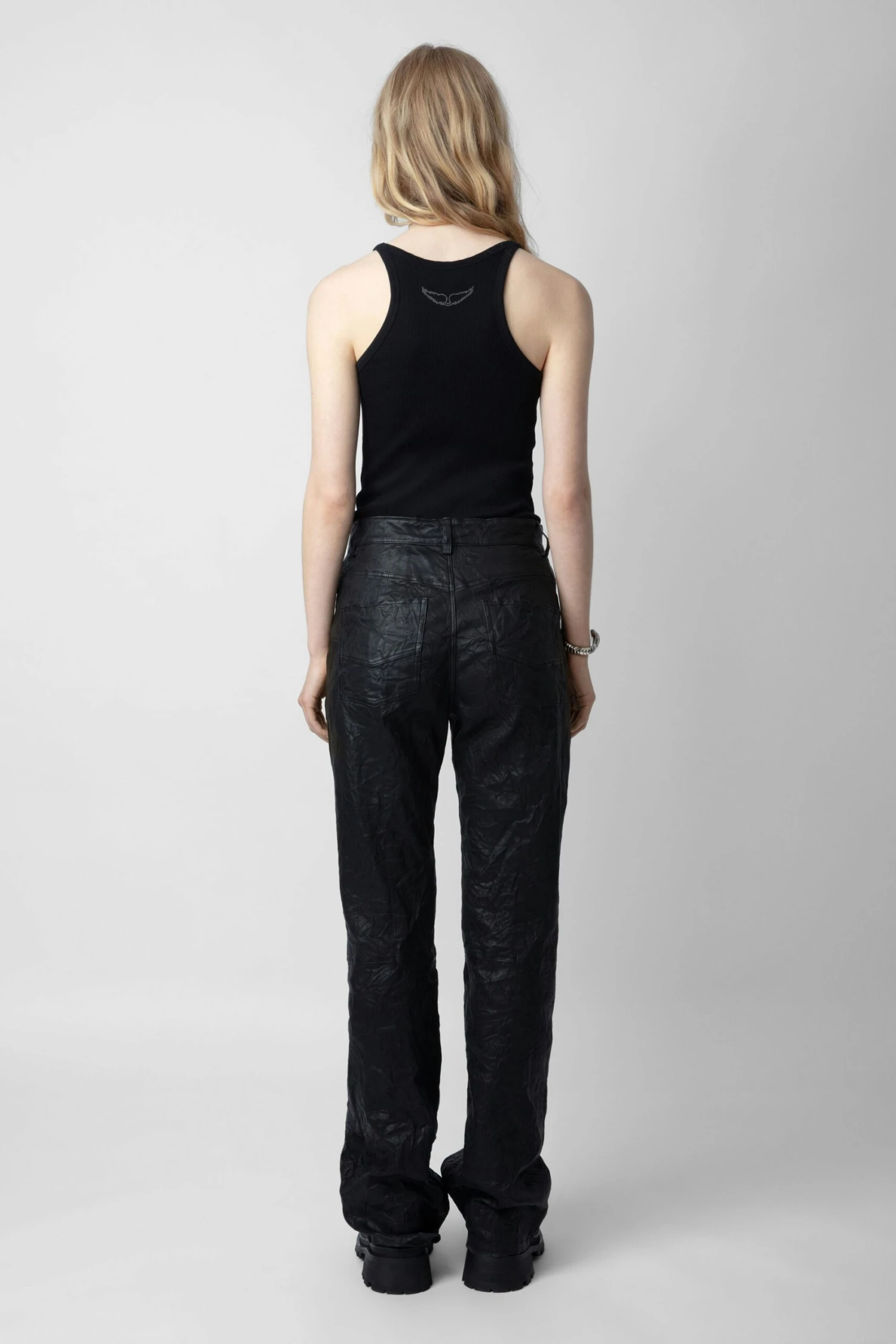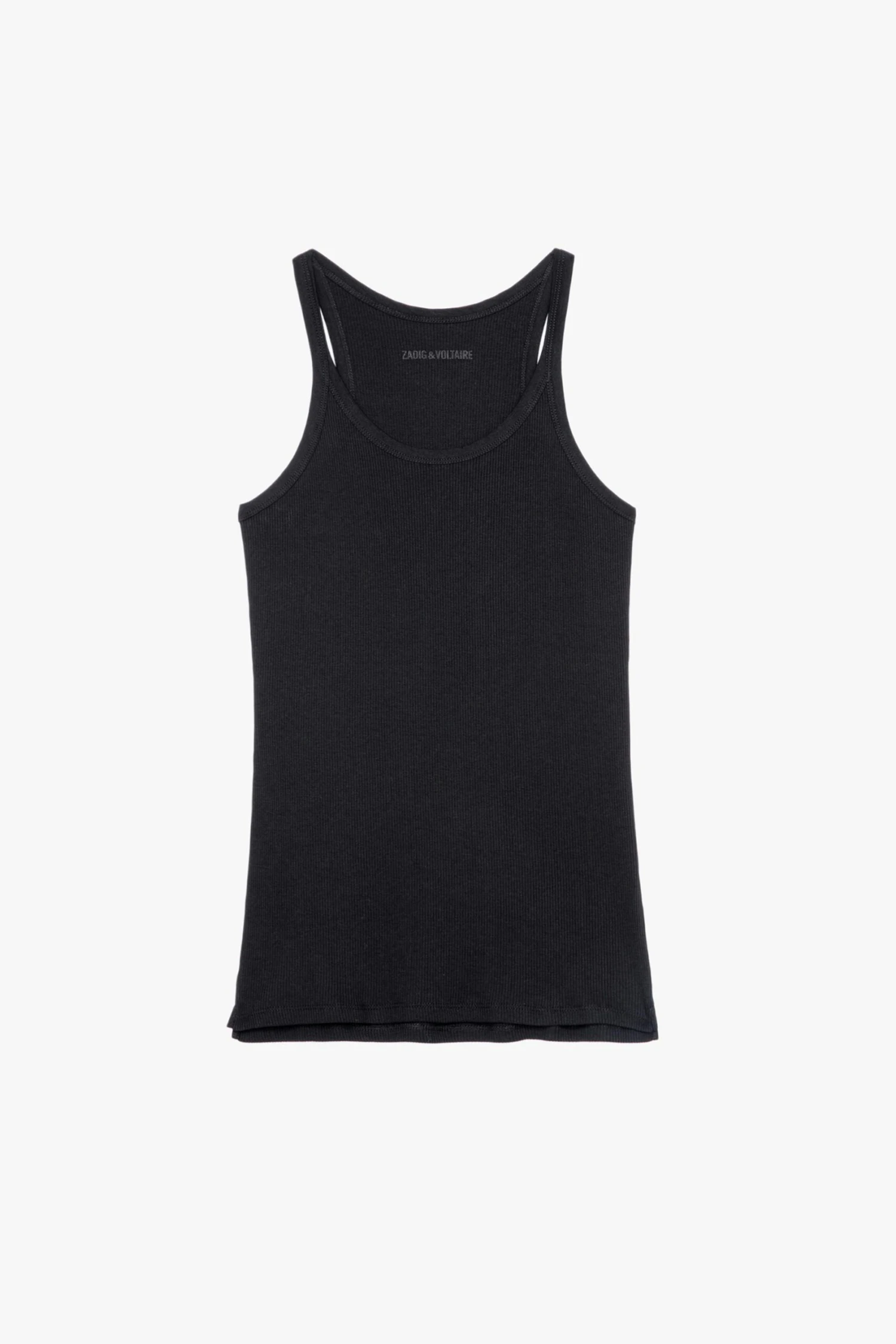 Women’s ribbed black cotton tank top with wings print on the back