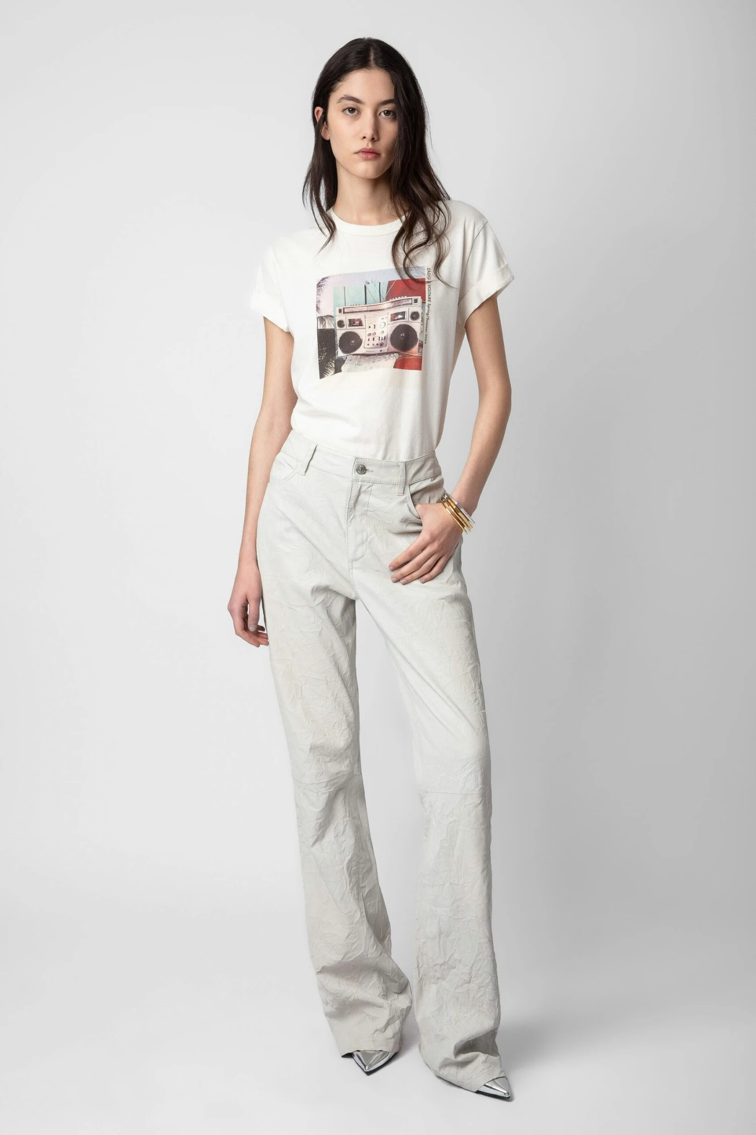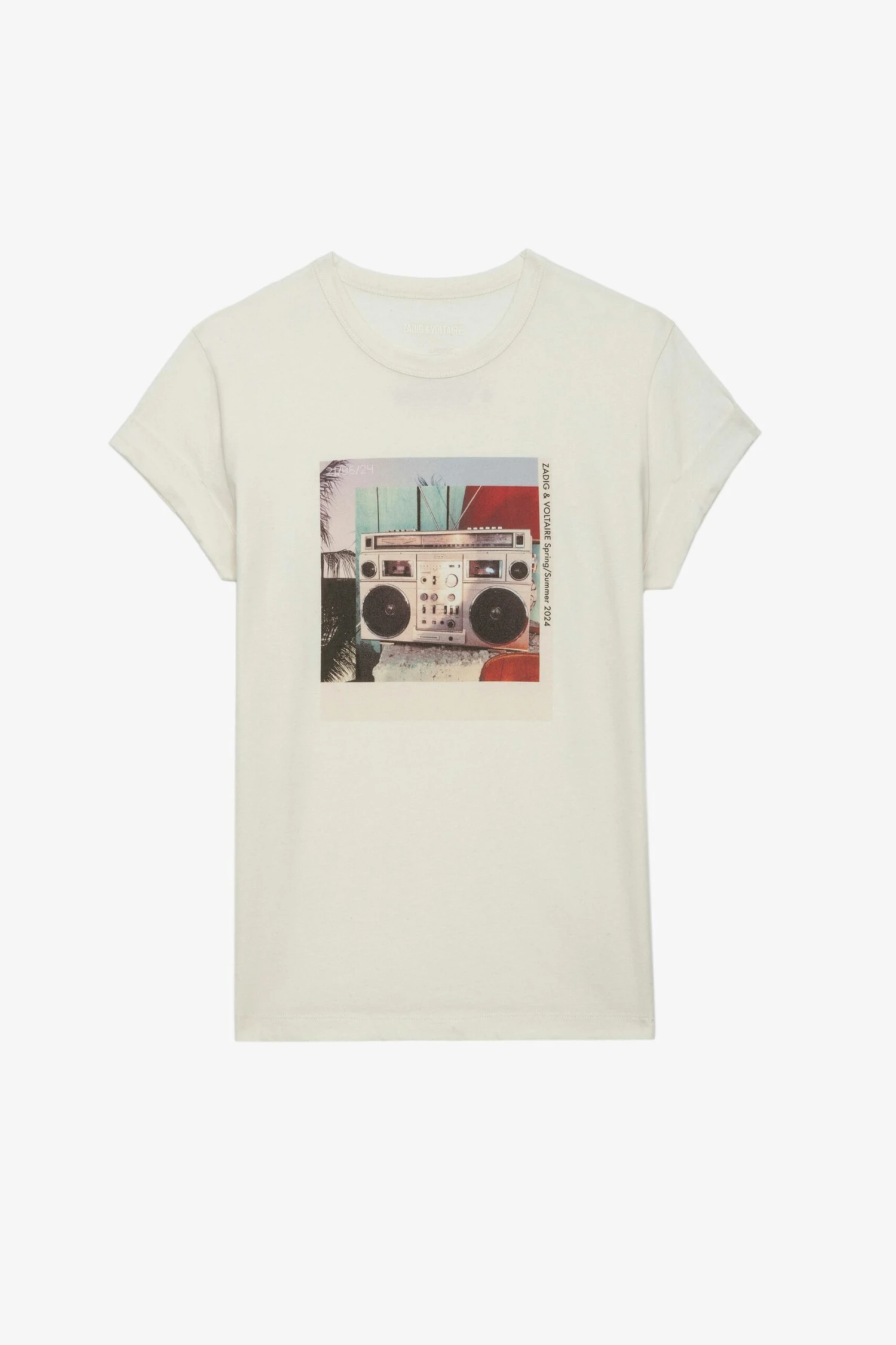 – Women’s Judo white cotton T-shirt – Ghetto Blaster photoprint on the front and Zadig&Voltaire signature on the back – Round neckline – Short sleeves – Made in Portugal Model is 177 cm / 5′ 9″ and is wearing a size S*100% of fibers comes from organic agricultureThe GOTS certification guarantees that this product does not contain GMOs. It also ensures the absence of harmful substances in the product, a social and environmental responsible management and the end-to-end traceability of the supply chain. The dyes are made with GOTS approved inks and colorants, which do not contain toxic heavy metals and do not require aromatic solvents nor harmful substances.