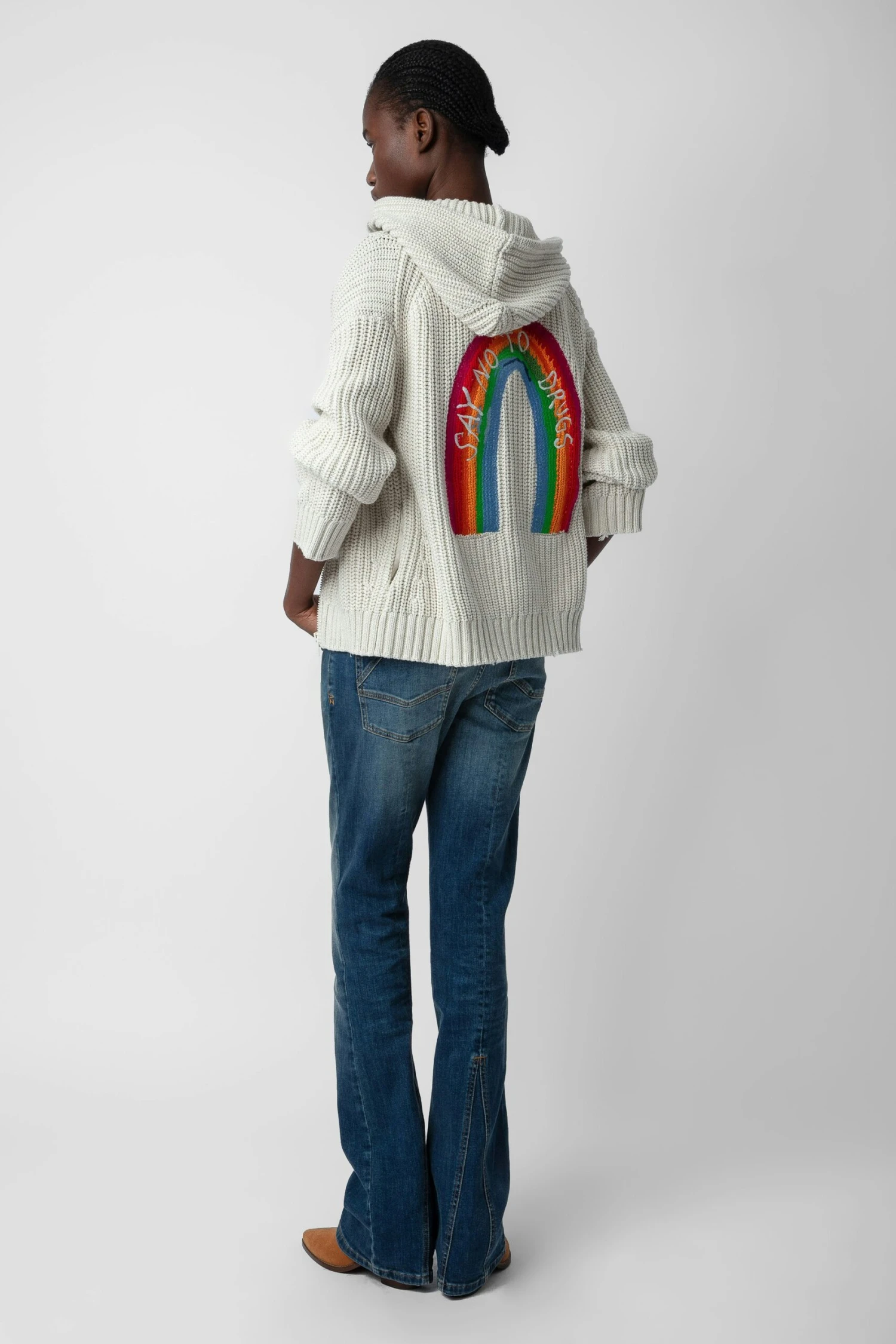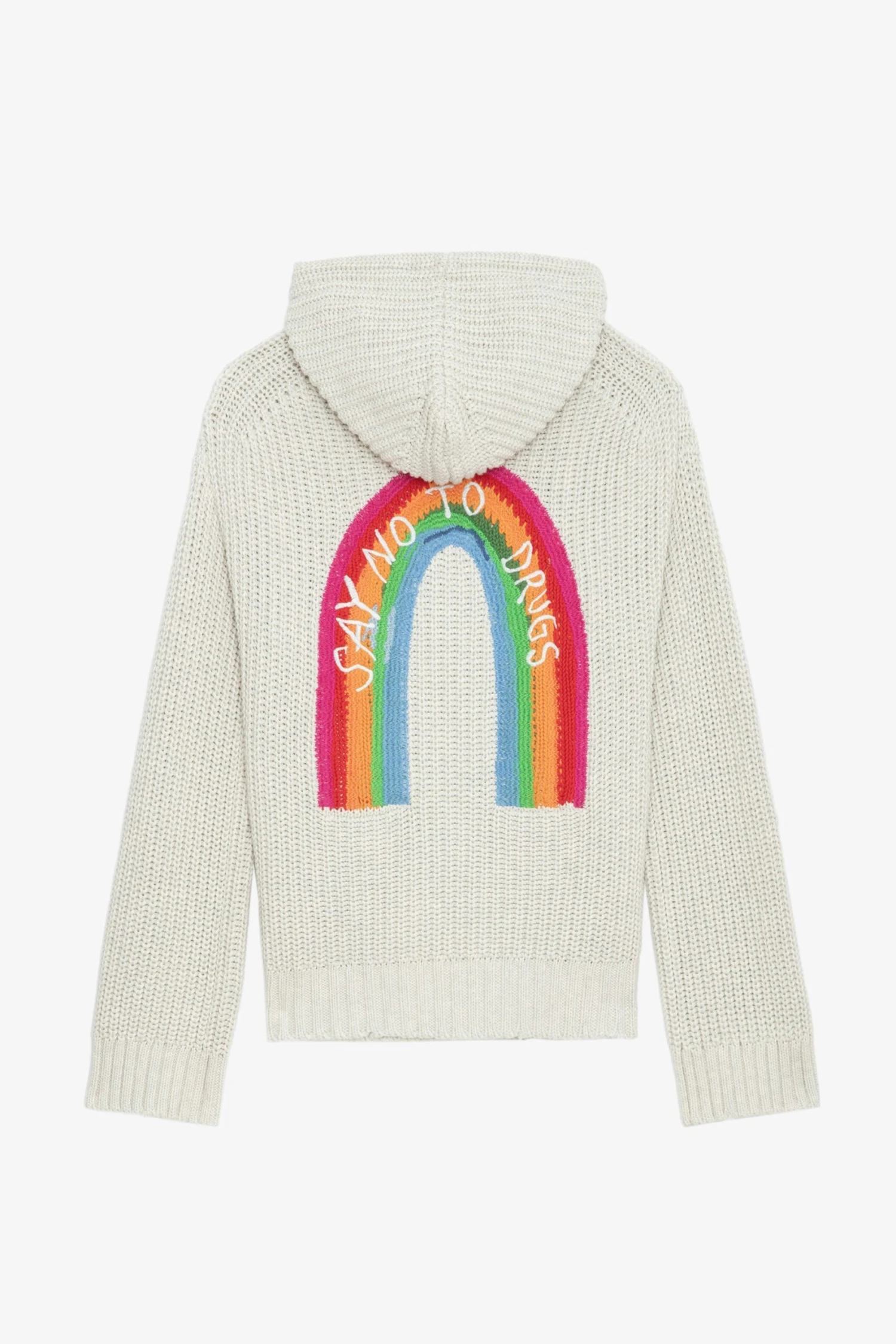 – Women’s ecru cardigan – Hoodie with zipper closure on front – Rainbow embroidery on back with “Say no to drugs” text – Elasticized cuffs and hemline with distressing Model is 174 cm / 5′ 8″ and is wearing a size S*100% of fibers comes from organic agricultureThe GOTS certification guarantees that this product does not contain GMOs. It also ensures the absence of harmful substances in the product, a social and environmental responsible management and the end-to-end traceability of the supply chain. The dyes are made with GOTS approved inks and colorants, which do not contain toxic heavy metals and do not require aromatic solvents nor harmful substances.