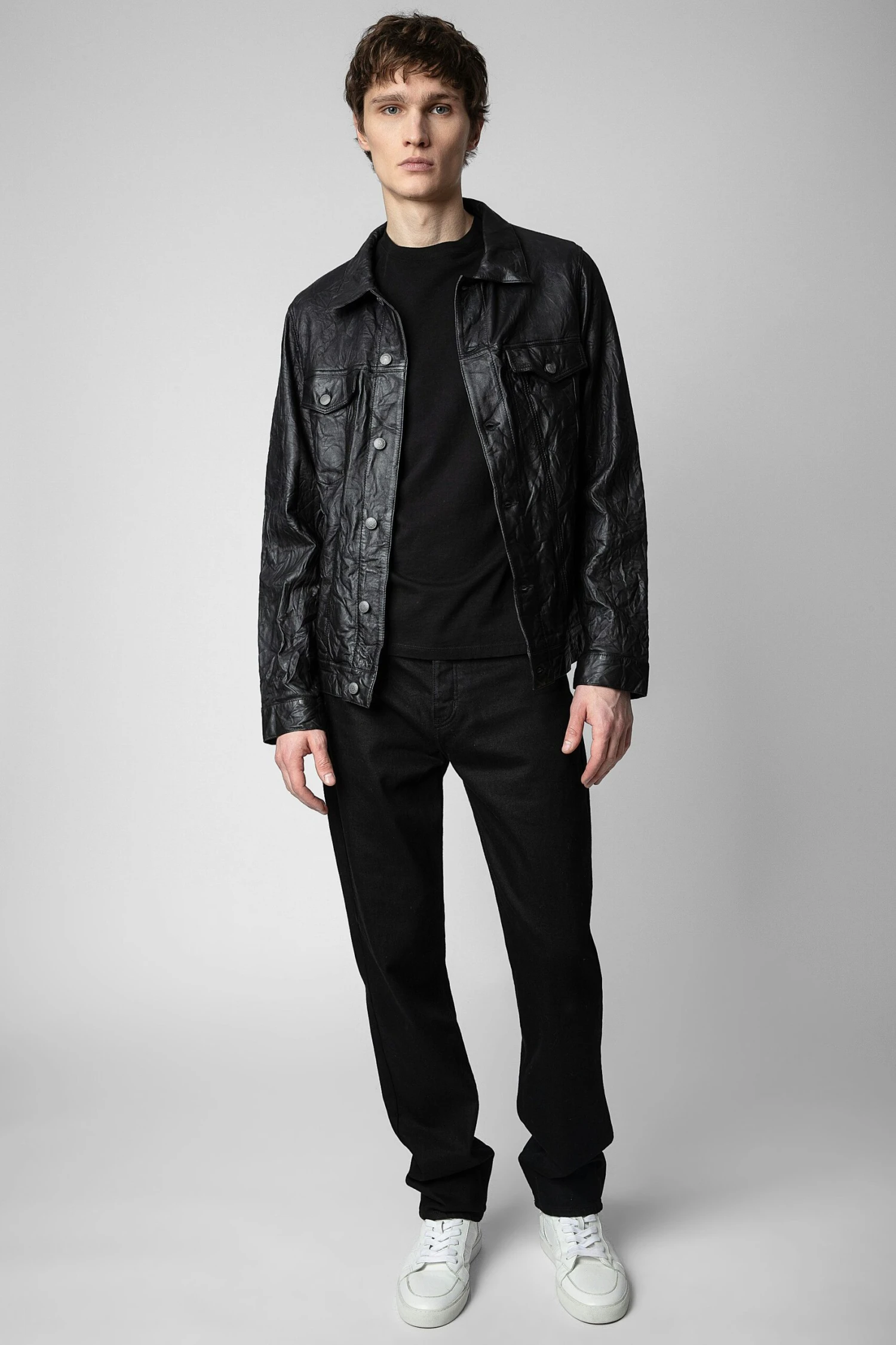 Blazer in crinkled leather, the Maison’s signature material, with long sleeves and a buttoned closure. – Zadig&Voltaire Men’s blazer in black crinkled leather – Buttoned closure – 2 chest pockets with flaps – 2 welt side pockets – Buttoned cuffs – Zadig&Voltaire’s signature material, crinkled leather is obtained by means of a multi-step process developed by the Maison, guaranteeing a unique product that incorporates exceptional craftsmanshipModel is 186 cm / 6′ 1″ and is wearing a size MThe Leather Working Group/LWG is a membership organization comprised of brands, suppliers, leather manufacturers and other stakeholders within the leather manufacturing industry. The group has developed an auditing program which certifies leather manufacturing facilities based on their environmental compliance and performance capabilities