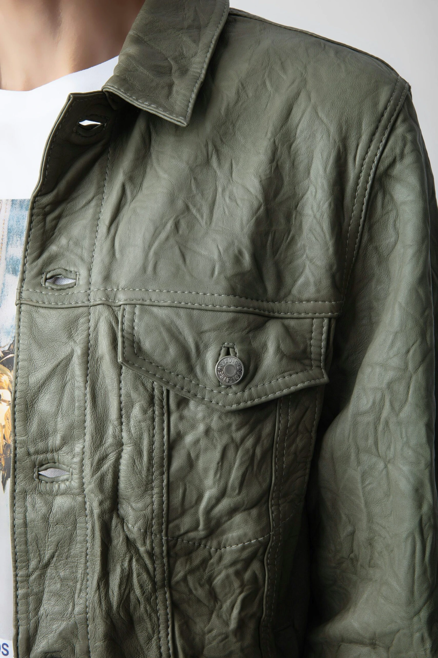 Men’s crinkled leather jacket.