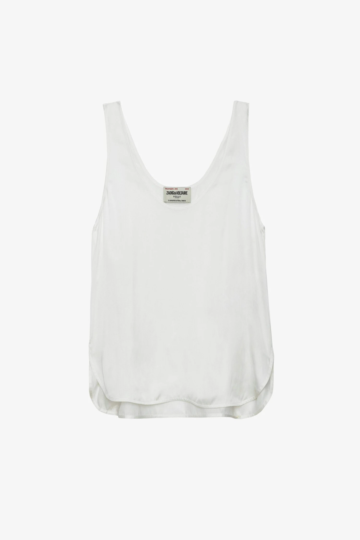 – Women’s Judo white flowing satin top – Round neckline – Cutaway shoulders Model is 177 cm / 5′ 9″ and is wearing a size S**recycled fibers
