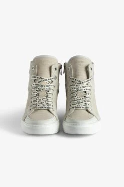 Women’s high-top sandals in metallic, crinkled leather with straps and C-shaped buckles