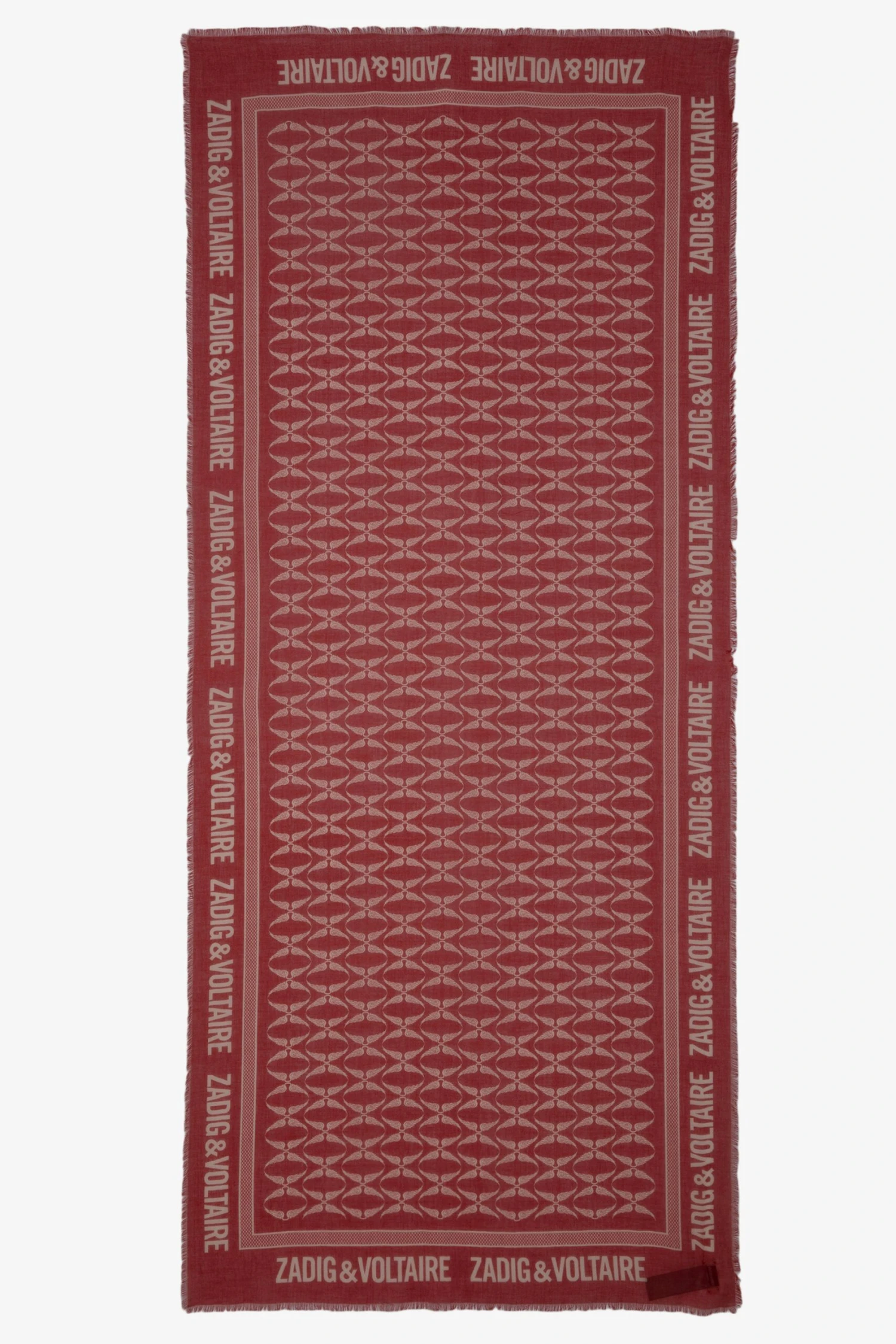 – Women’s Power red organic cotton rectangular scarf – Wings print and Zadig&Voltaire signature – Fringed trim