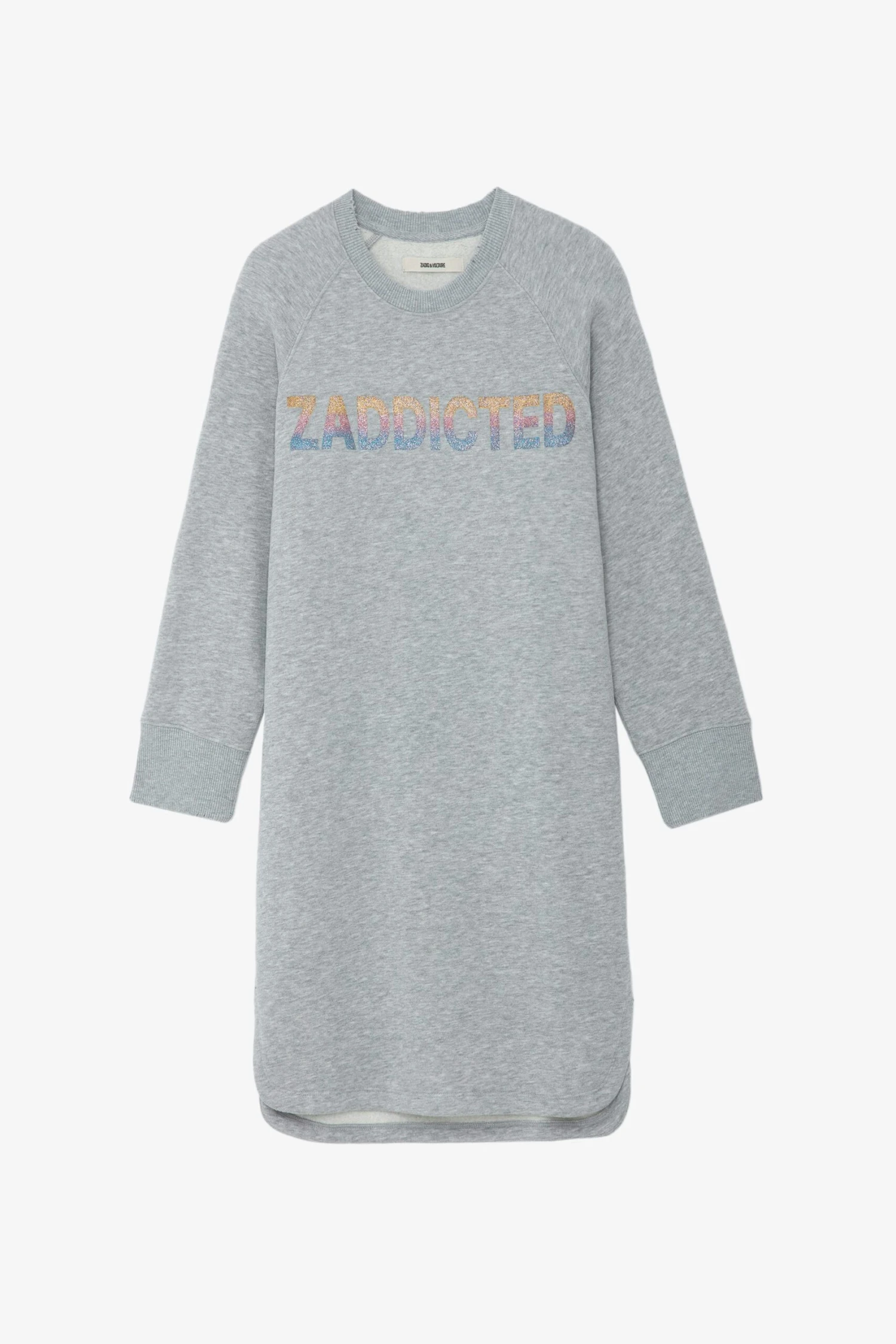 Women’s grey sweatshirt dress with glitter “Zaddicted” print.