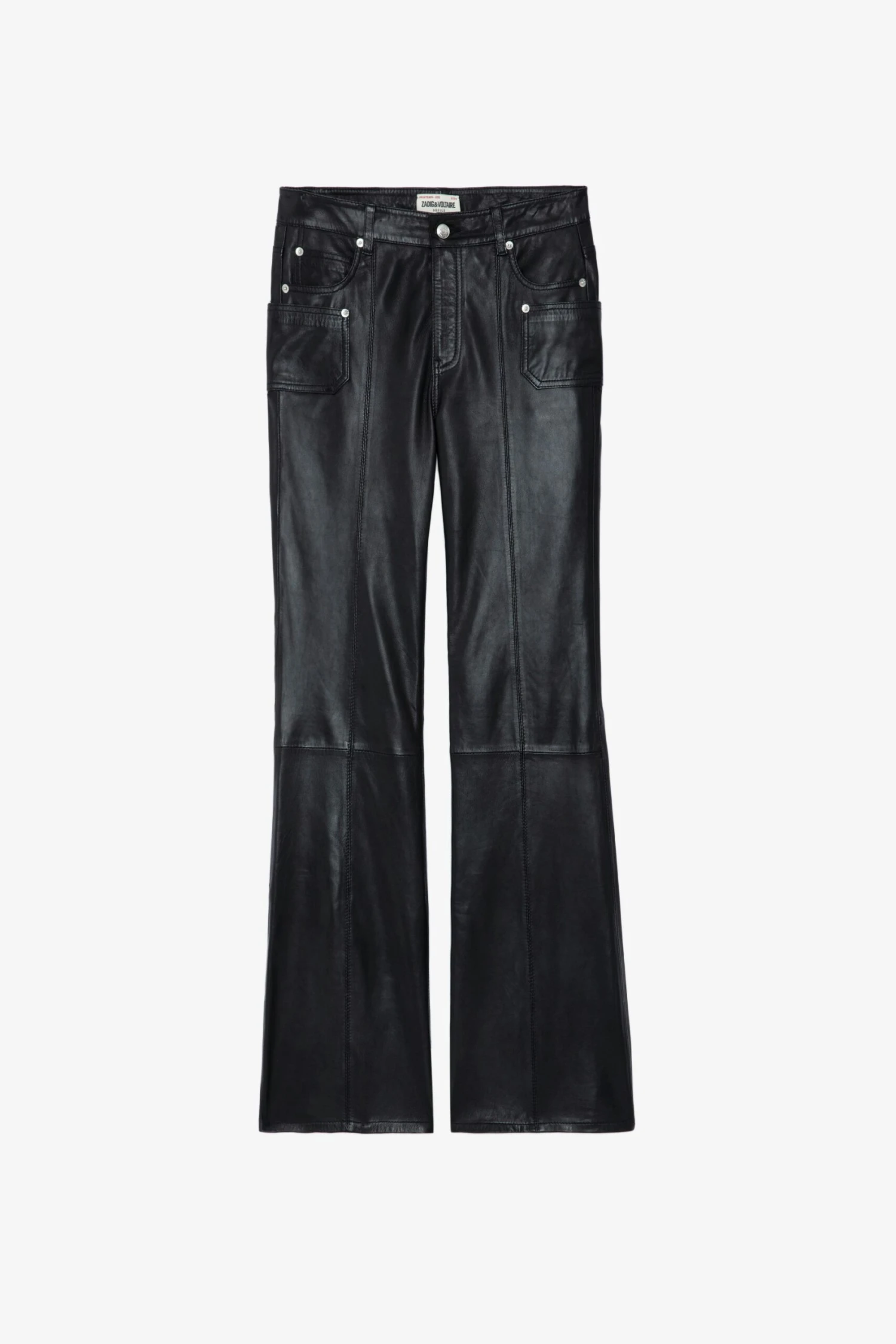 – Women’s black smooth lambskin pants – Multiple pockets throughout – Mid rise – Button and zip closure – Belt loops at the waist – Knee seams – Boot cutModel is 174 cm / 5′ 8″ and is wearing a size 36The Leather Working Group/LWG is a membership organization comprised of brands, suppliers, leather manufacturers and other stakeholders within the leather manufacturing industry. The group has developed an auditing program which certifies leather manufacturing facilities based on their environmental compliance and performance capabilities