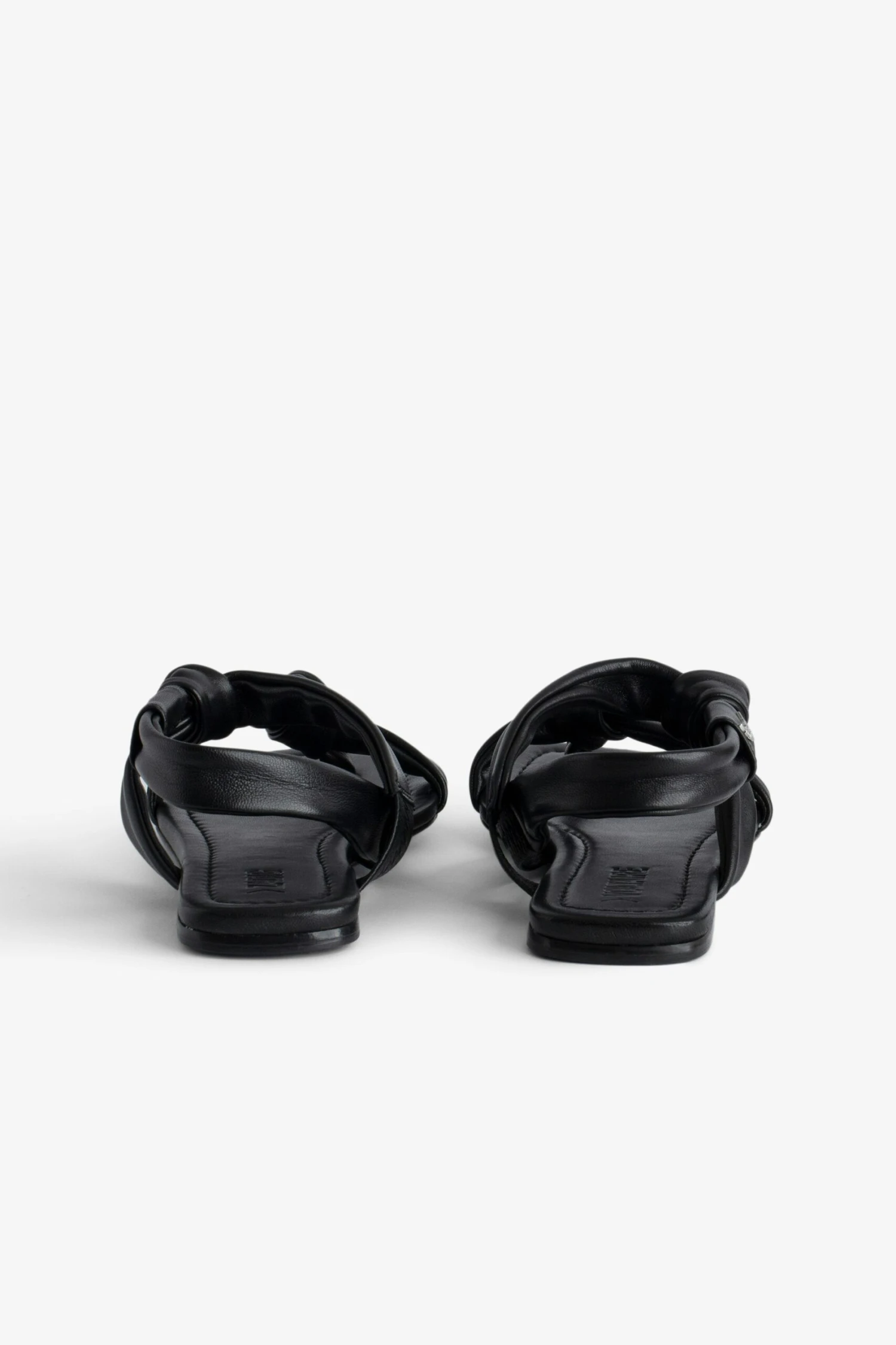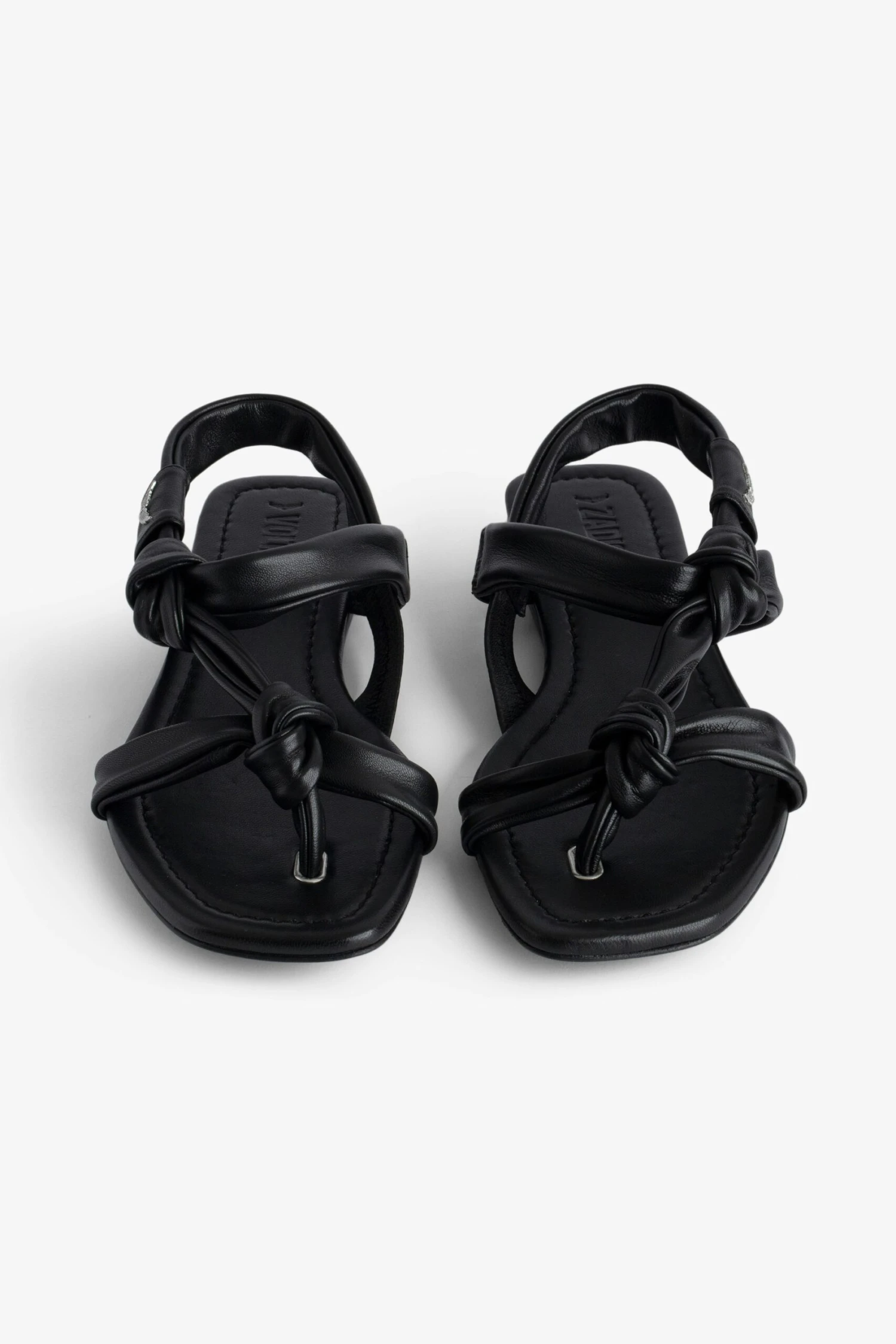 -Women’s black flat leather sandals r – Knotted leather details throughout – Wing motifs on sidesThe Leather Working Group/LWG is a membership organization comprised of brands, suppliers, leather manufacturers and other stakeholders within the leather manufacturing industry. The group has developed an auditing program which certifies leather manufacturing facilities based on their environmental compliance and performance capabilities