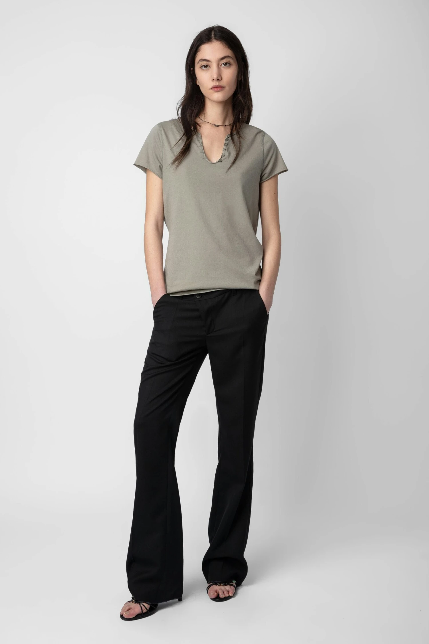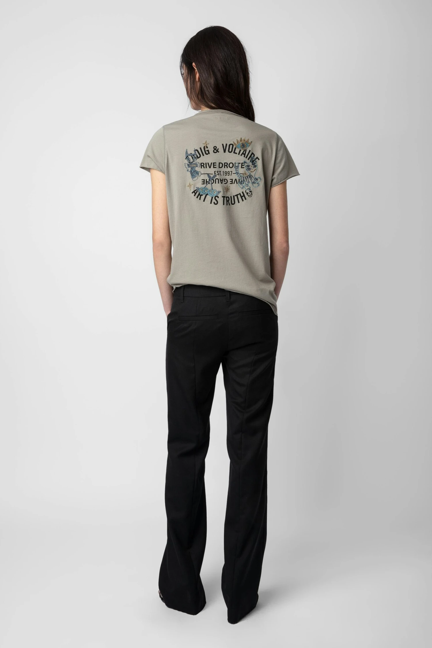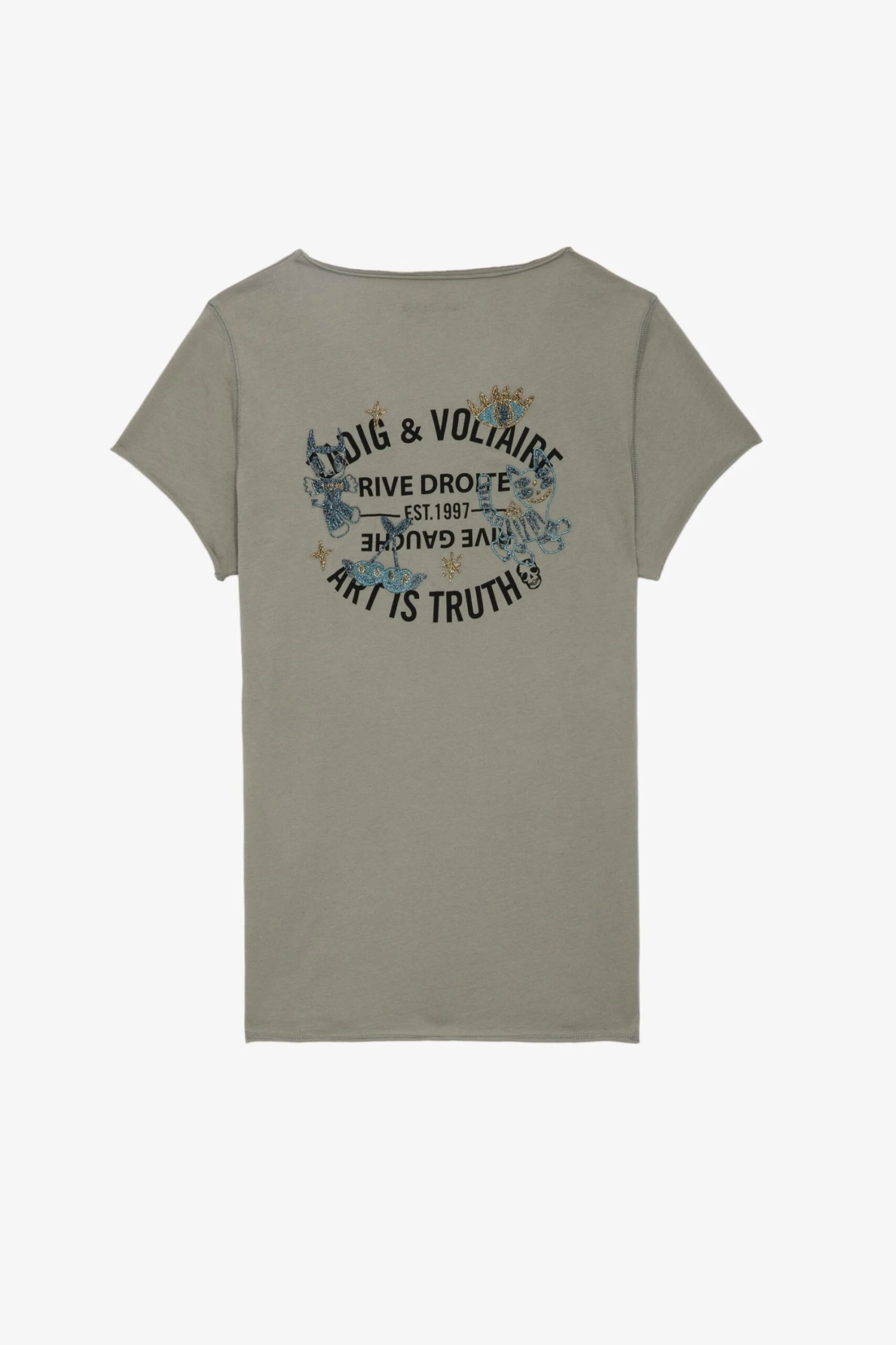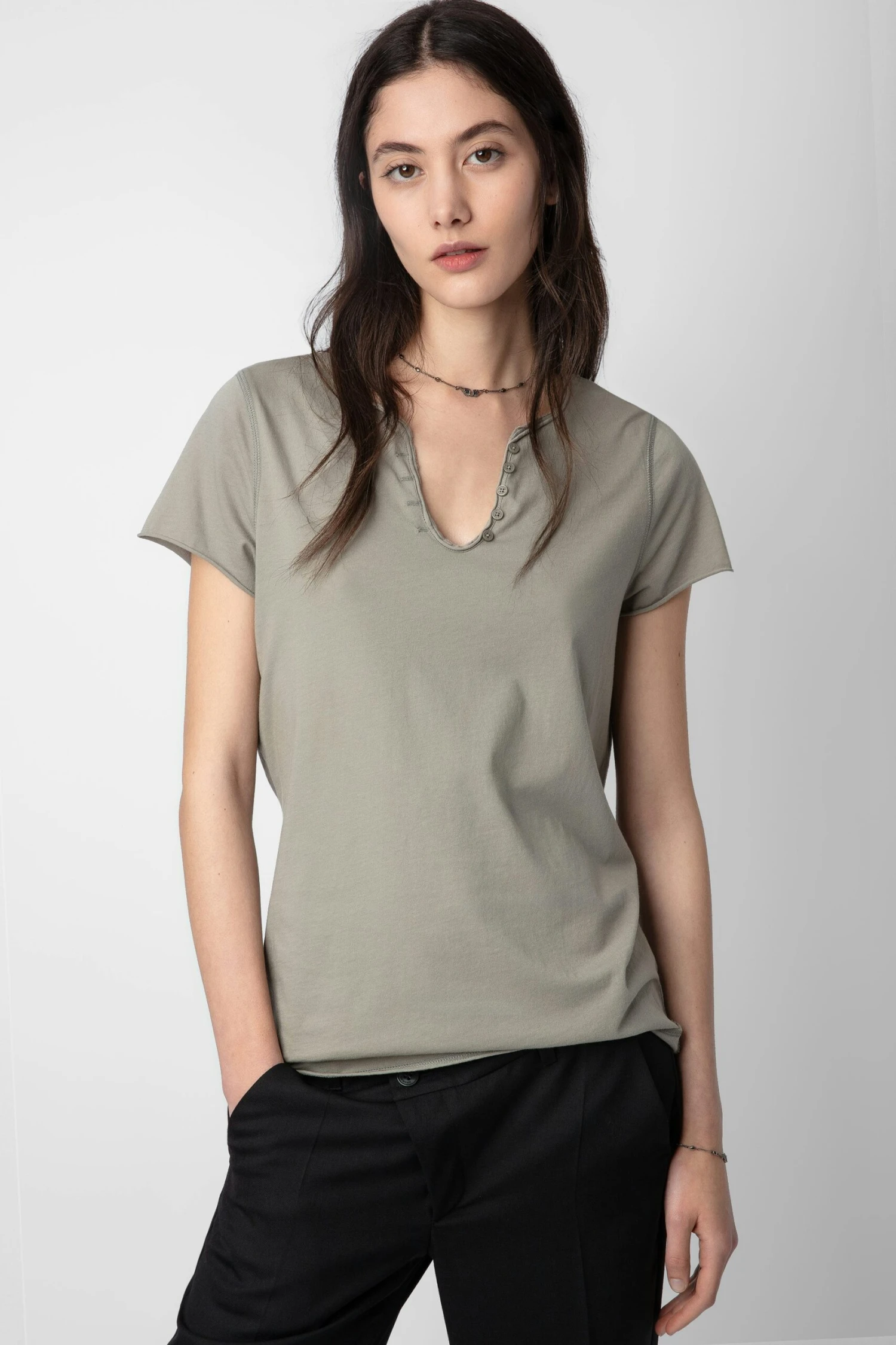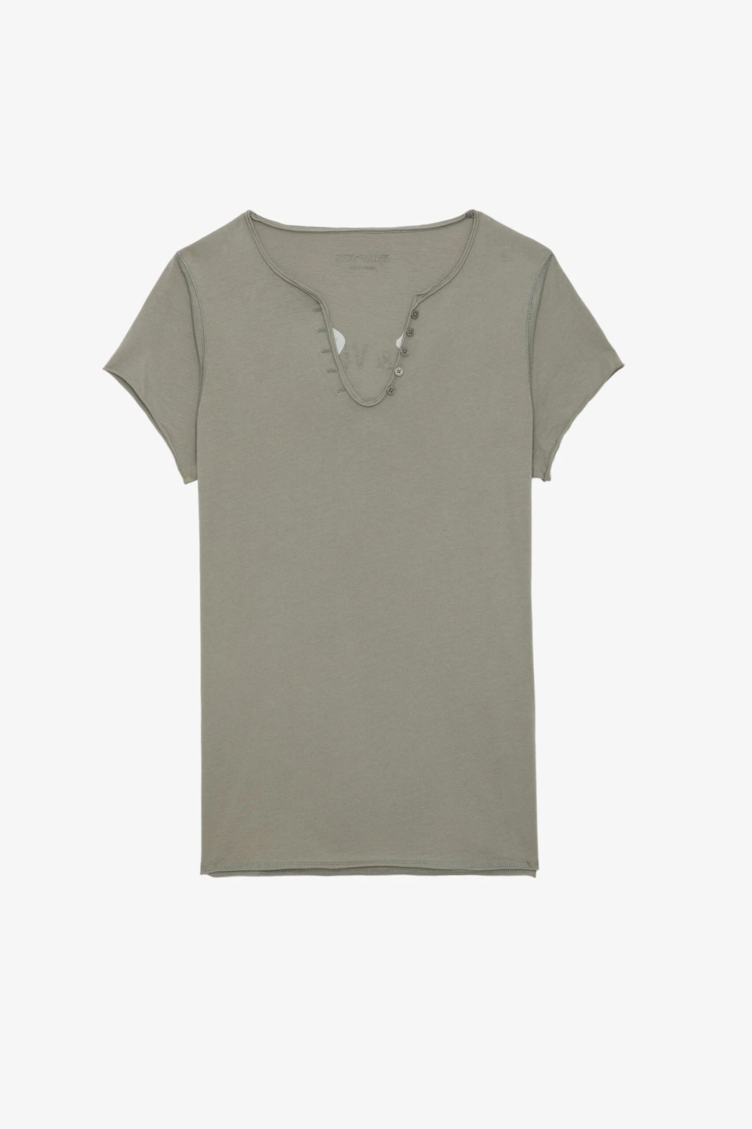 Customized details designed by Humberto Cruz, an artist and illustrator from San Diego. Influenced by pop culture, fashion and colors, he describes his work as spontaneous and quirky. – Women’s Trellis brown cotton Henley T-shirt – Insignia print on the back – 5-button Henley neckline – Short sleeves and raw edges – Made in Portugal Model is 178 cm / 5′ 10″ and is wearing a size S**Fibers from organic farming