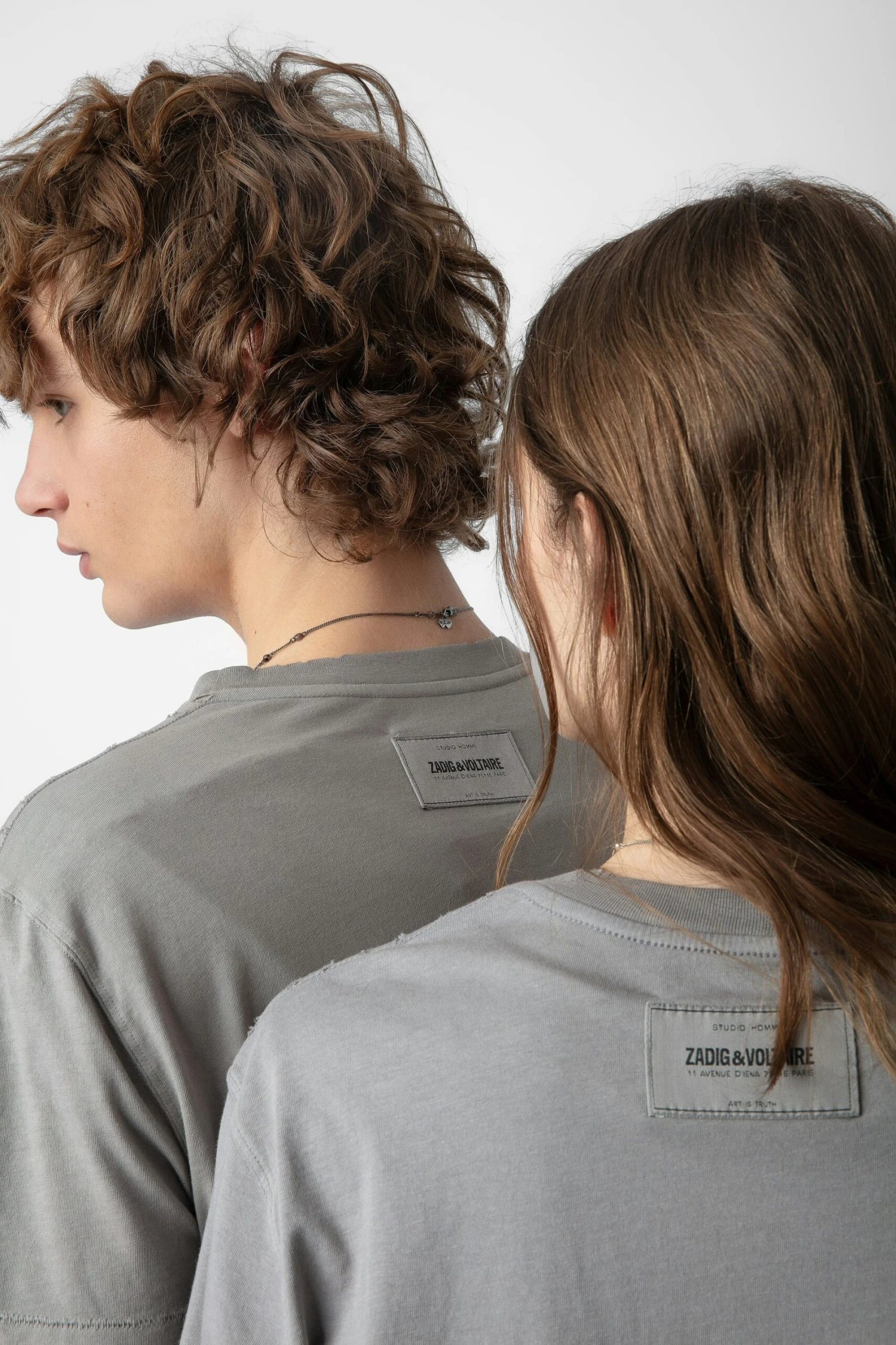– Unisex cotton t-shirt – Studio insignia on back – Round neck, short sleeves and distressed trim *100% of fibers comes from organic agricultureThe GOTS certification guarantees that this product does not contain GMOs. It also ensures the absence of harmful substances in the product, a social and environmental responsible management and the end-to-end traceability of the supply chain. The dyes are made with GOTS approved inks and colorants, which do not contain toxic heavy metals and do not require aromatic solvents nor harmful substances.