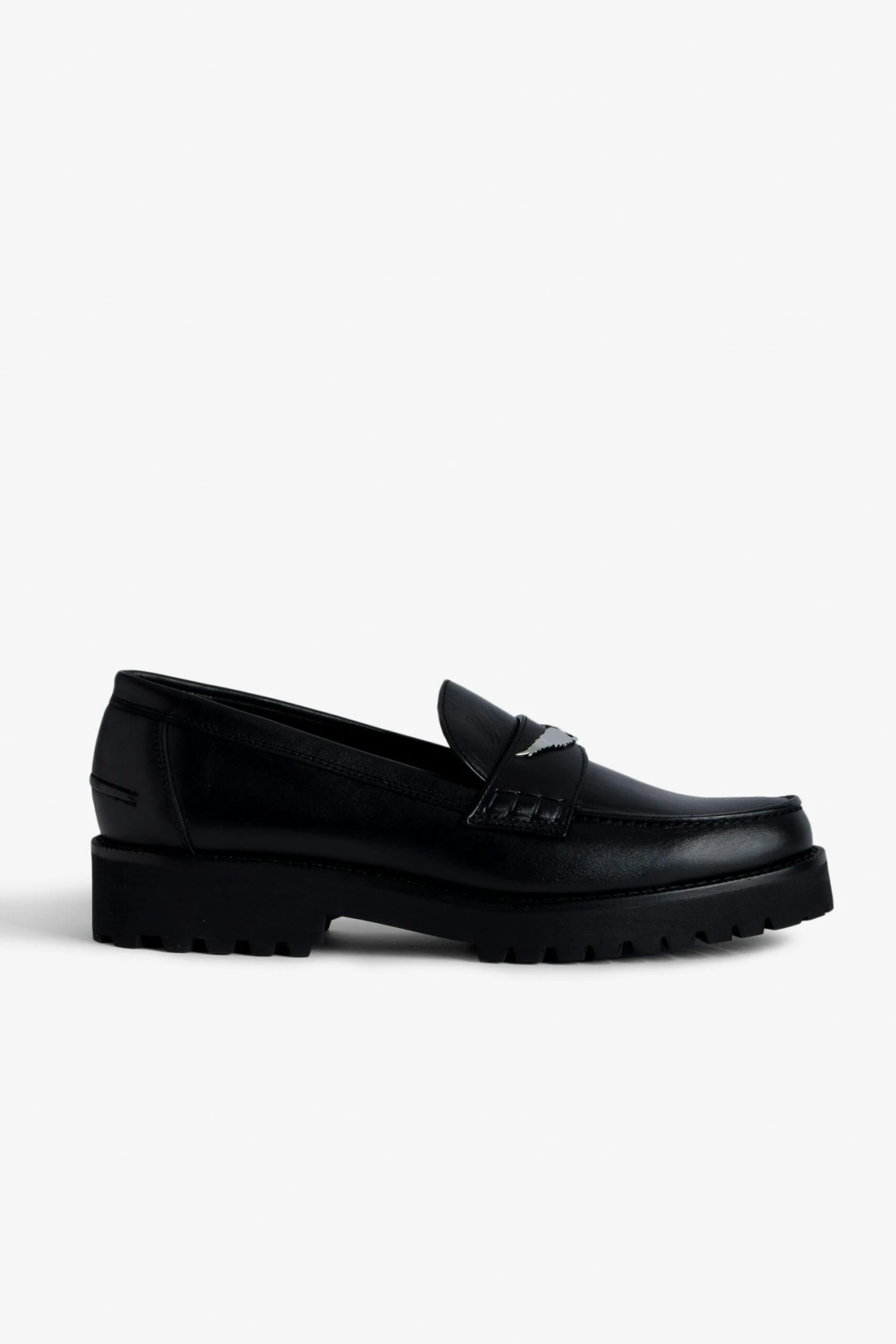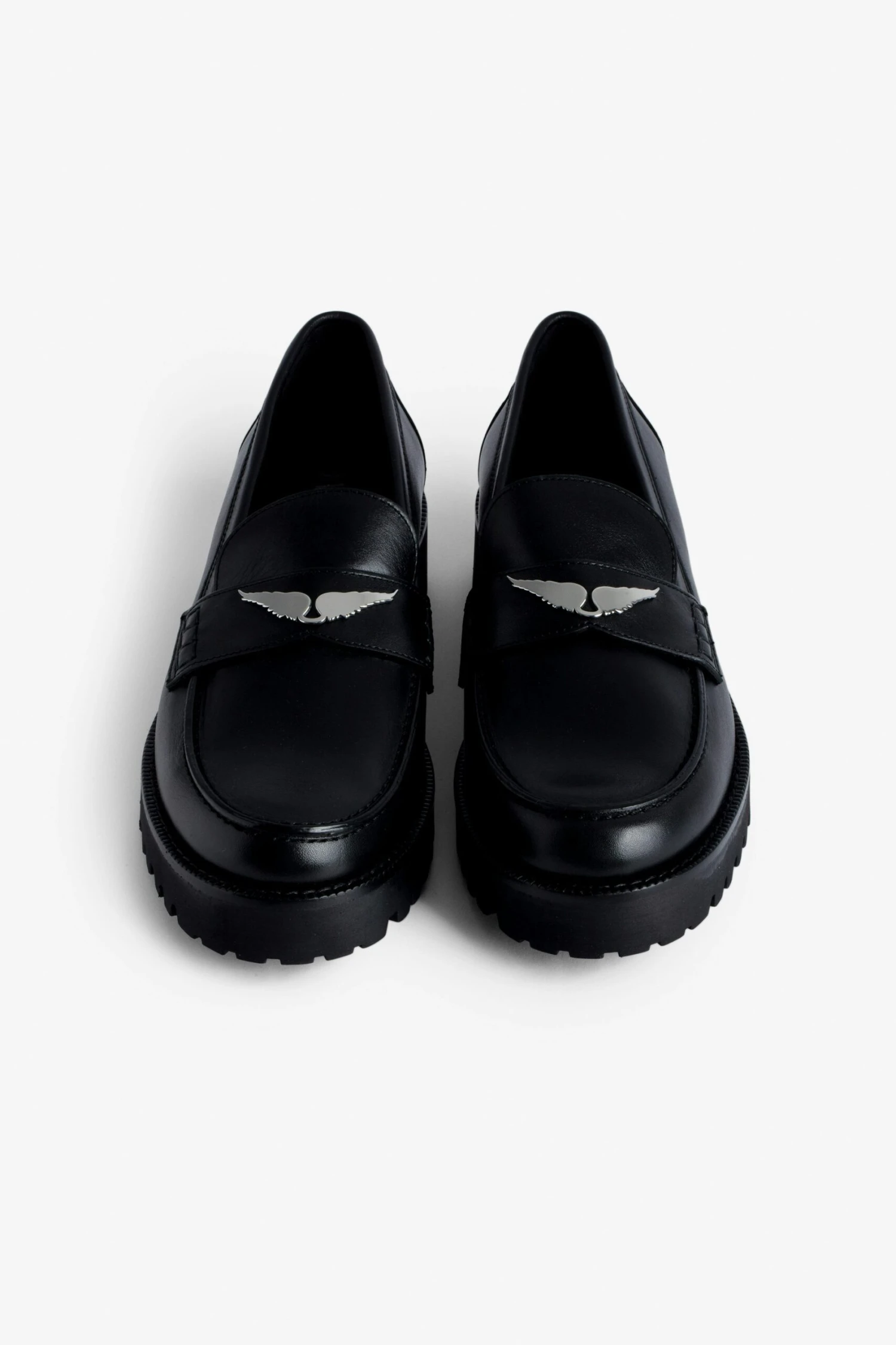 – Women’s black semi-patent smooth leather loafers – Metal mirror wings charm on tongue – Cleated sole – Heel height: 1.5 in – Made in Spain The Leather Working Group/LWG is a membership organization comprised of brands, suppliers, leather manufacturers and other stakeholders within the leather manufacturing industry. The group has developed an auditing program which certifies leather manufacturing facilities based on their environmental compliance and performance capabilities