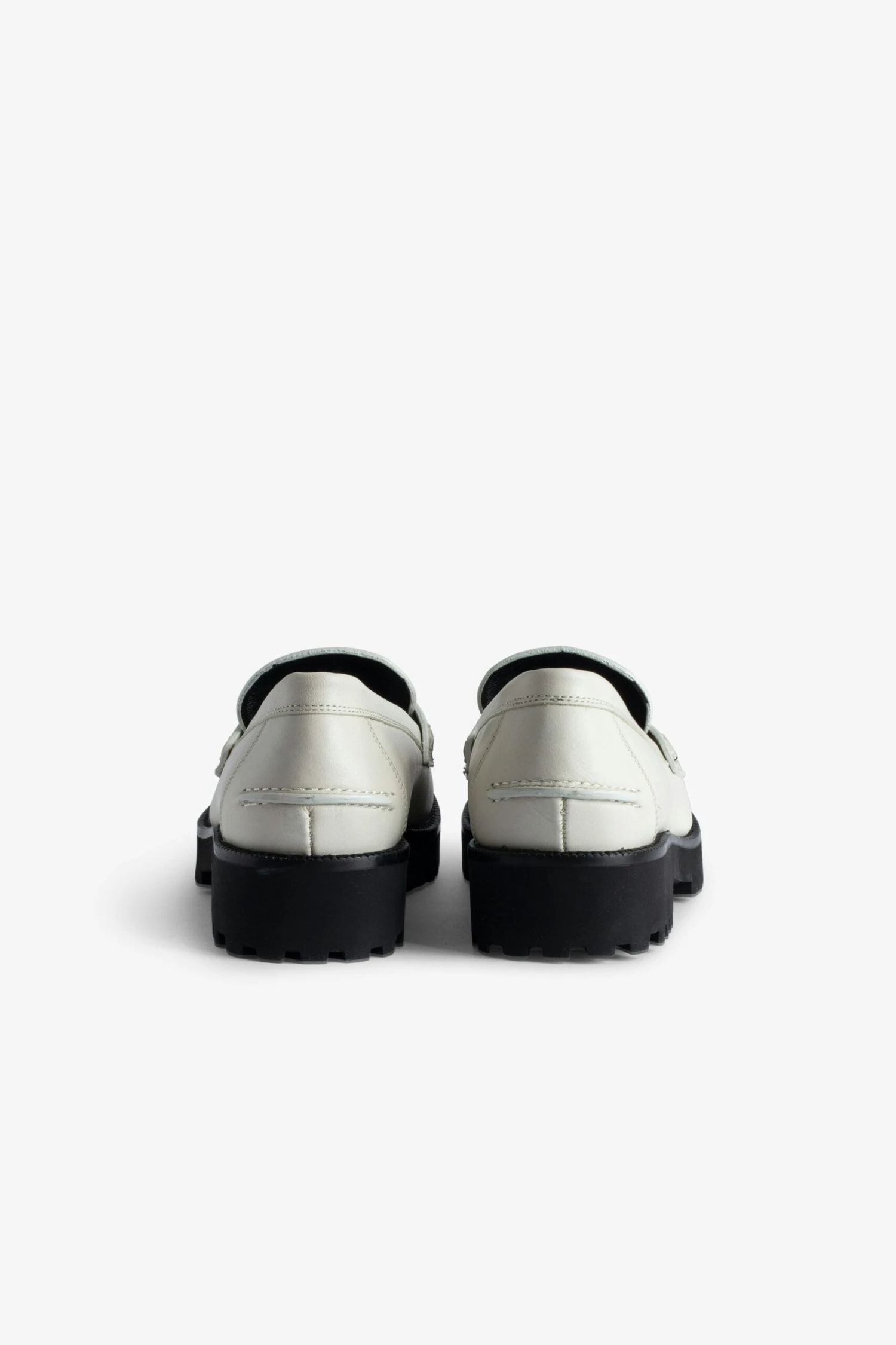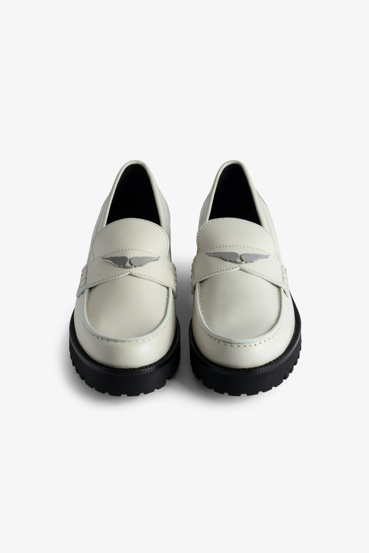 – Women’s semi-patent smooth leather loafers – Metal mirror wings charm on tongue – Cleated sole – Heel height: 3.5 cm – Made in Spain The Leather Working Group/LWG is a membership organization comprised of brands, suppliers, leather manufacturers and other stakeholders within the leather manufacturing industry. The group has developed an auditing program which certifies leather manufacturing facilities based on their environmental compliance and performance capabilities