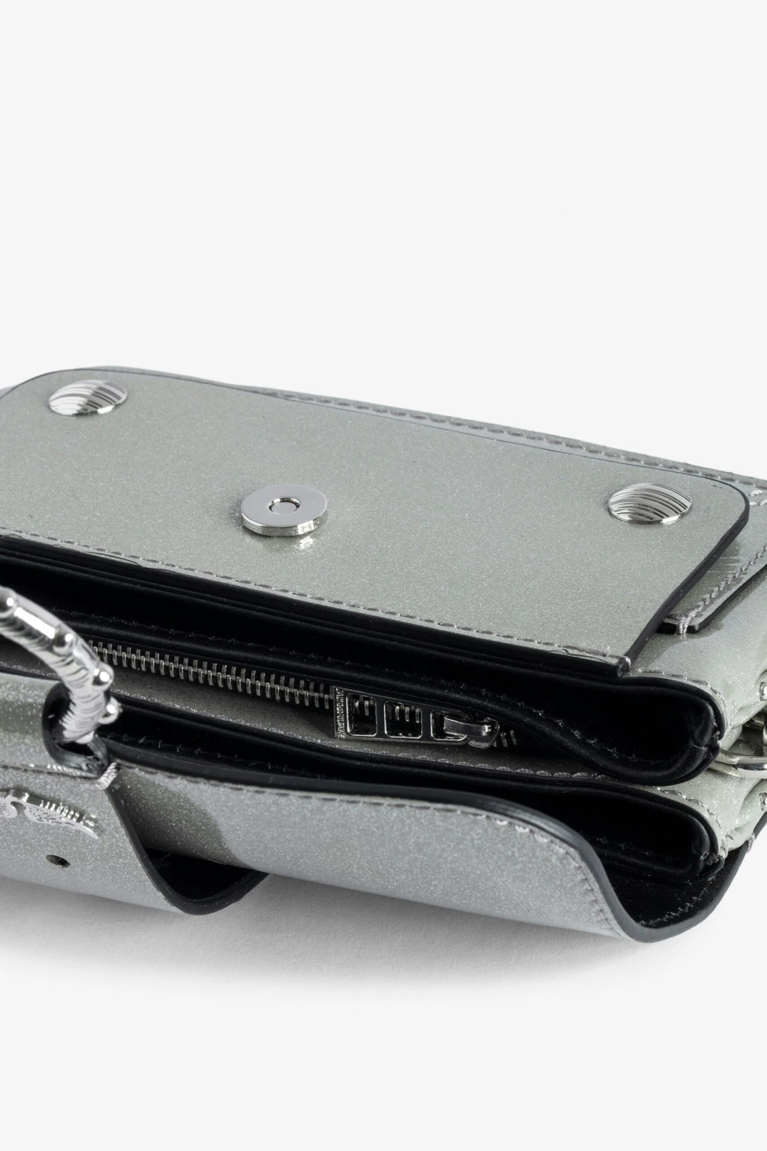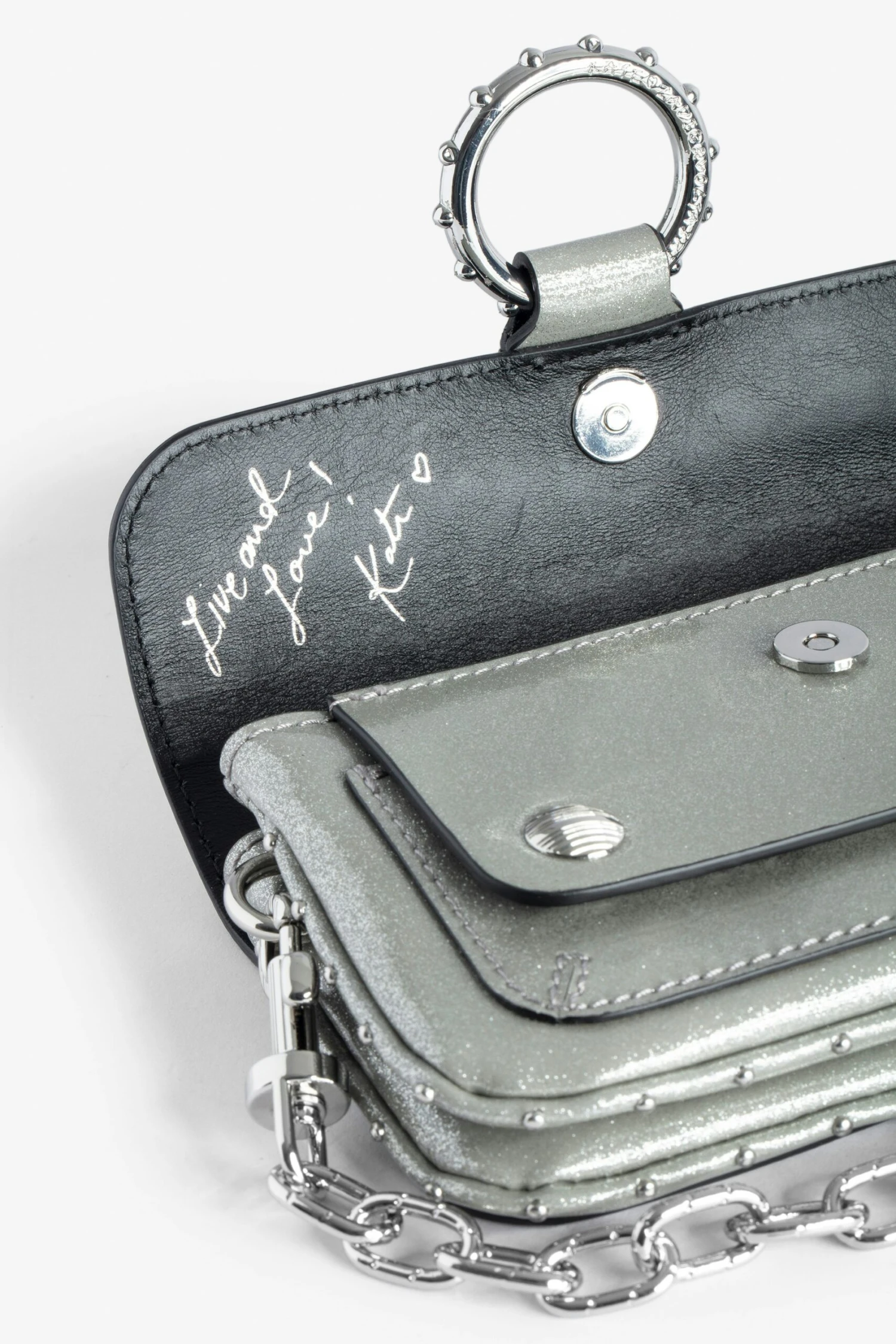 – Women’s Kate Wallet bag in Silver metallic patent leather – Black cotton lining – Metal ring with “Kate Loves Zadig&Voltaire” engraving and studded trim – Removable metal chain – Flap with magnetic closure – Two compartments separated by a zipped pocket – Carry by hand, over the shoulder or across the body using the leather loop – Made in Italy The Leather Working Group/LWG is a membership organization comprised of brands, suppliers, leather manufacturers and other stakeholders within the leather manufacturing industry. The group has developed an auditing program which certifies leather manufacturing facilities based on their environmental compliance and performance capabilities