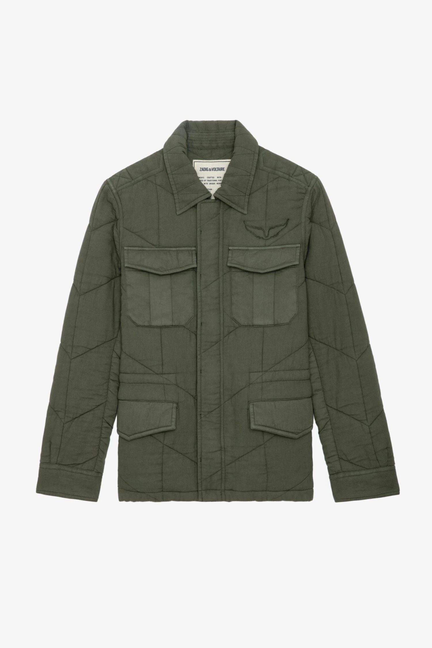 Khaki cotton twill jacket with pockets, overstitching and wings motif.