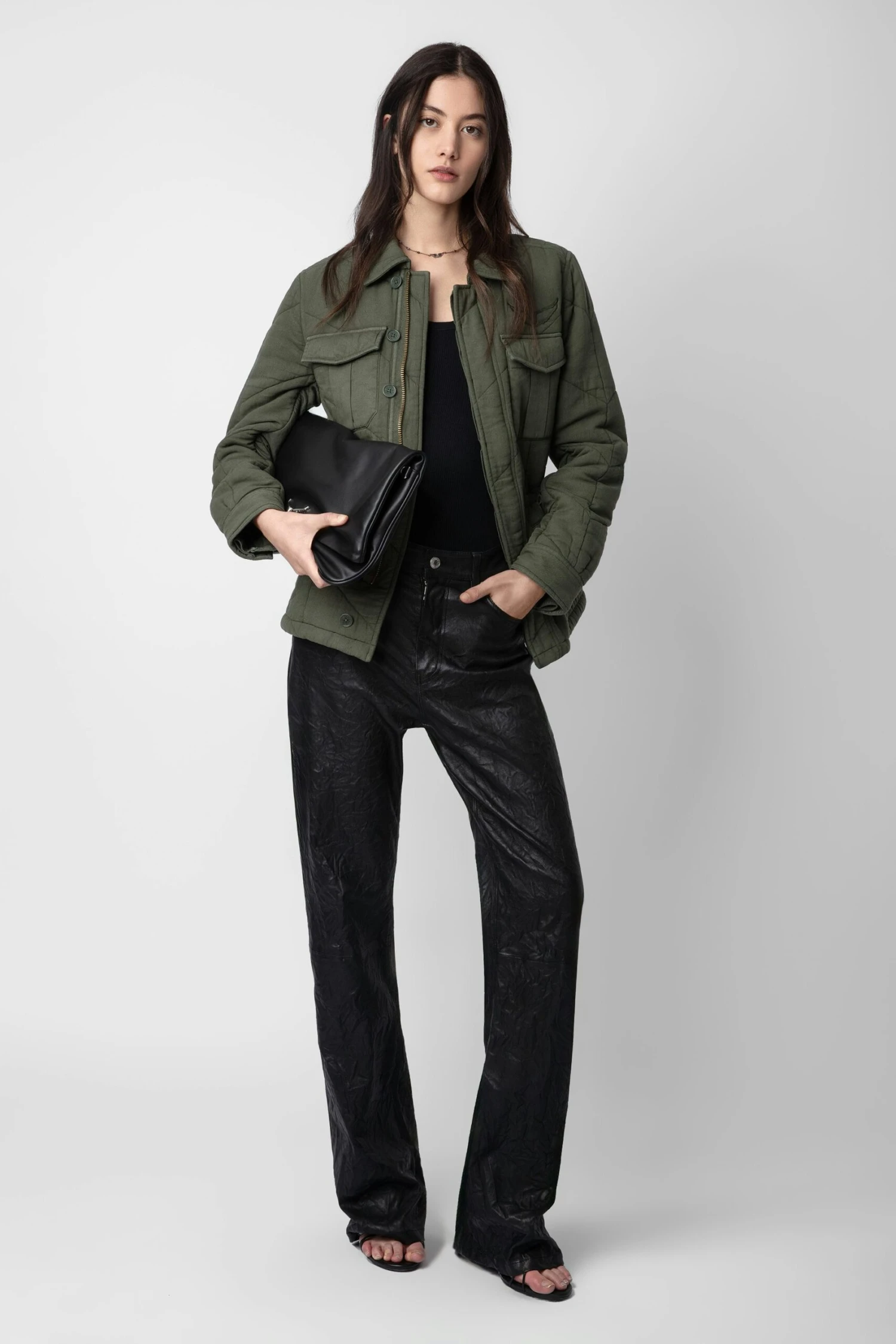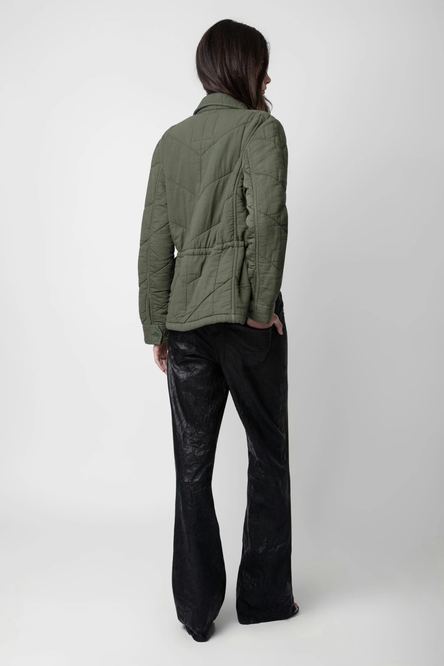 – Women’s khaki cotton twill jacket – Overstitched details and wings motif – Shirt collar and zip and button closure – 2 chest pockets and 2 side flap pockets – Long sleeves and buttoned cuffs Model is 178 cm / 5′ 10″ and is wearing a size S**Fibers from organic farming