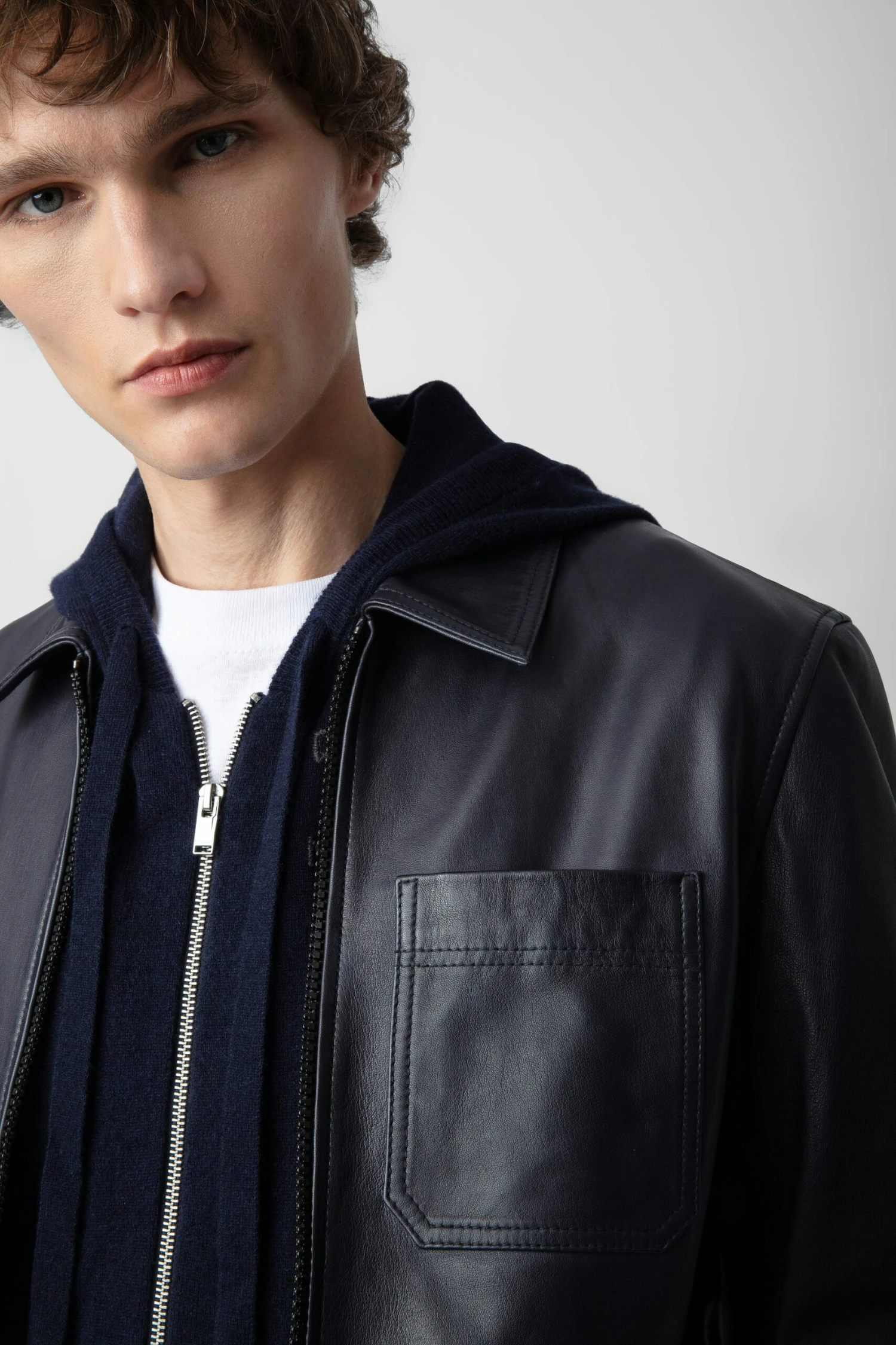 The Lasso jacket is part of the UNISEX collection. A free-spirited wardrobe by Zadig&Voltaire, the UNISEX collection represents the fusion of feminine and masculine features. – Unisex dark blue leather jacket – Straight cut – Classic collar and zip fastening – 2 side pockets – 1 chest pocket – Long sleeves and buttoned cuffsThe Leather Working Group/LWG is a membership organization comprised of brands, suppliers, leather manufacturers and other stakeholders within the leather manufacturing industry. The group has developed an auditing program which certifies leather manufacturing facilities based on their environmental compliance and performance capabilities