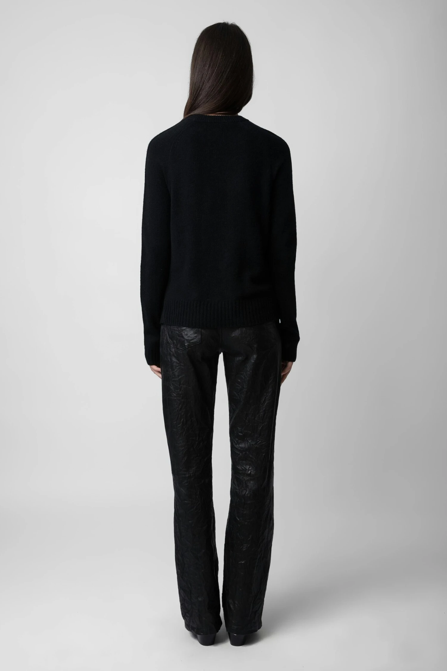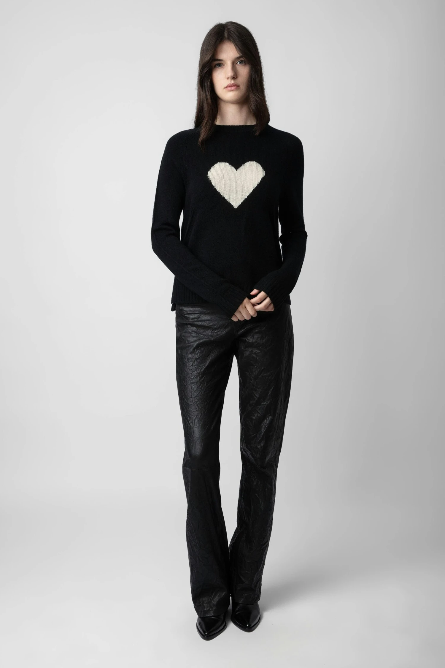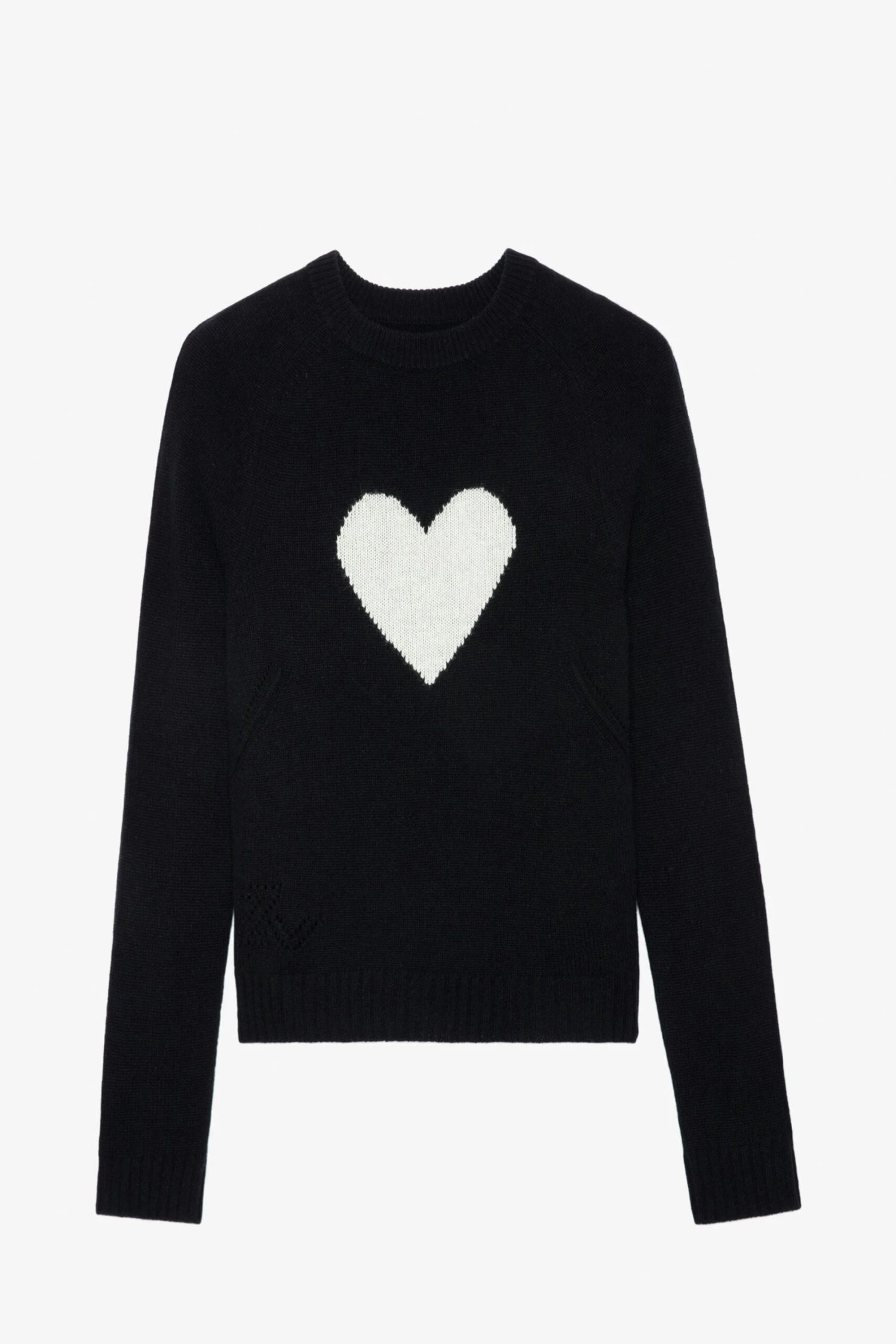 – Women’s black cashmere sweater – Intarsia jacquard heart motif on front – Round neck, long sleeves, ZV signature and ribbed trim Model is 179 cm / 5′ 10″ and is wearing a size S The cashmere for this product is produced according to The Good Cashmere Standard® by AbTF. The standard ensures the welfare of the cashmere goats, protects natural resources and supports the local farmers that produce it.