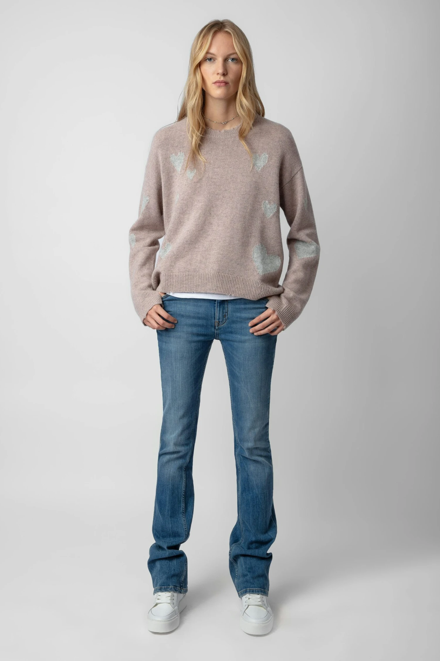 Customized details designed by Humberto Cruz, an artist and illustrator from San Diego. Influenced by pop culture, fashion and colors, he describes his work as spontaneous and quirky. – Women’s light pink cashmere sweater – Contrasting heart motifs – Round neck – Long sleeves and ribbed trimModel is 174 cm / 5′ 8″ and is wearing a size S The cashmere for this product is produced according to The Good Cashmere Standard® by AbTF. The standard ensures the welfare of the cashmere goats, protects natural resources and supports the local farmers that produce it.