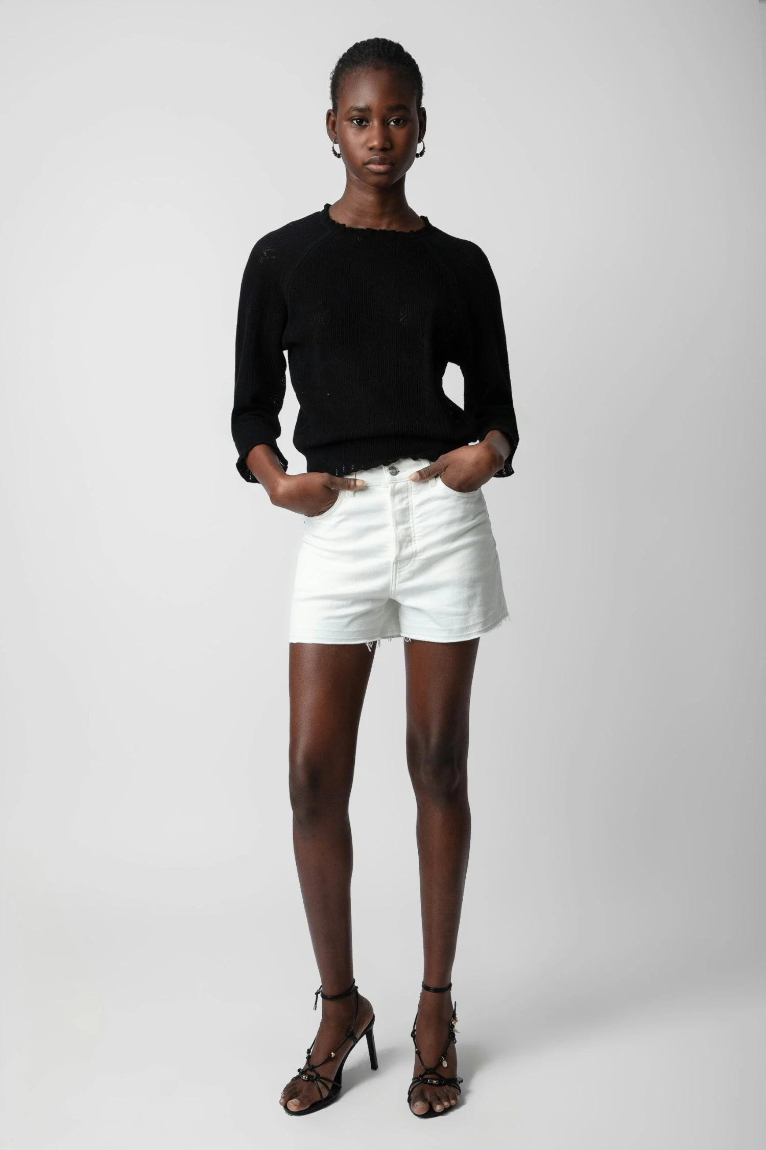 – Women’s cropped black knit sweater – 3u002F4 length sleeves – Cuffed sleeves and hemModel is 174 cm / 5′ 8″ and is wearing a size S*100% of fibers comes from organic agricultureThe GOTS certification guarantees that this product does not contain GMOs. It also ensures the absence of harmful substances in the product, a social and environmental responsible management and the end-to-end traceability of the supply chain. The dyes are made with GOTS approved inks and colorants, which do not contain toxic heavy metals and do not require aromatic solvents nor harmful substances.