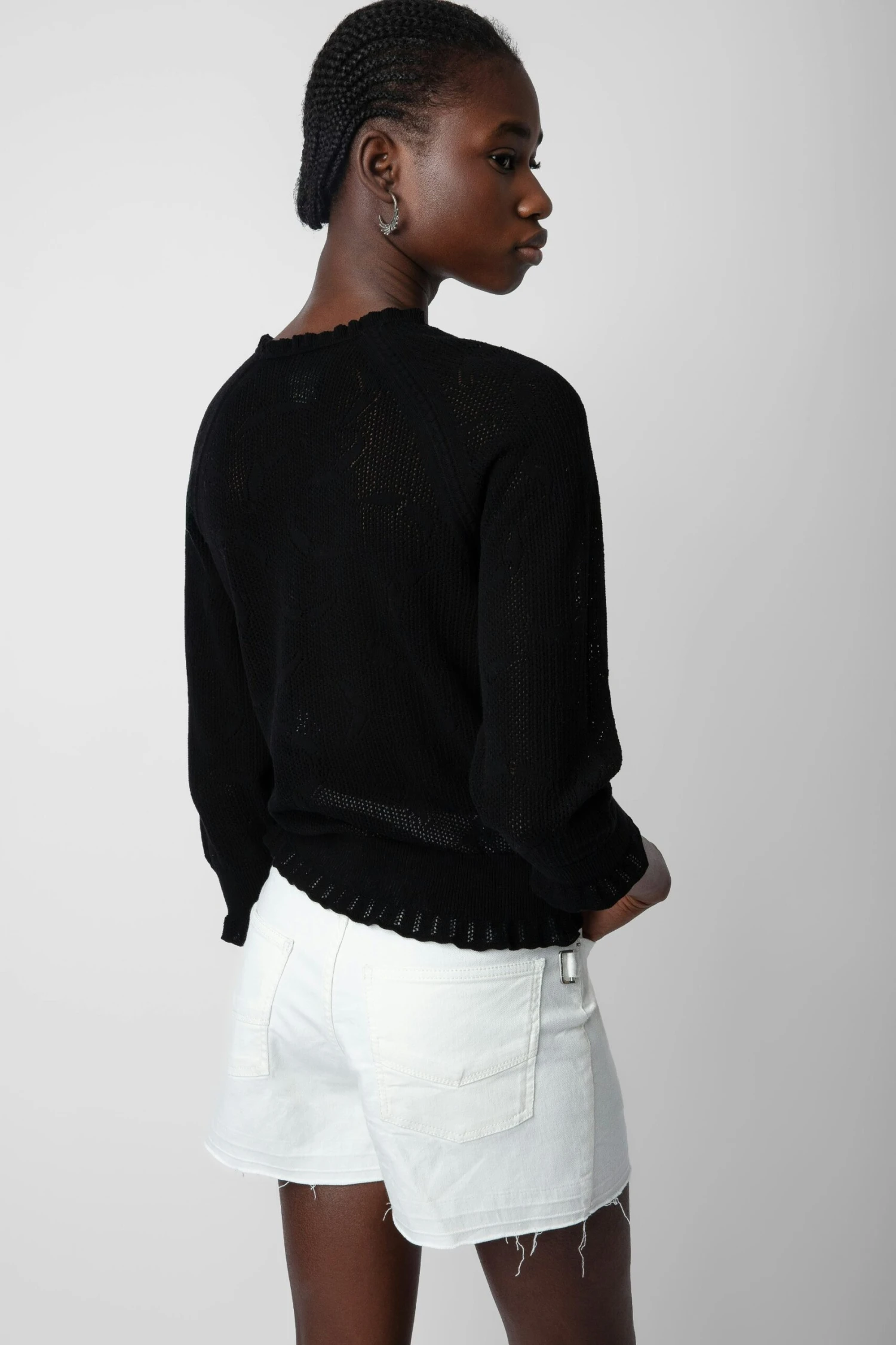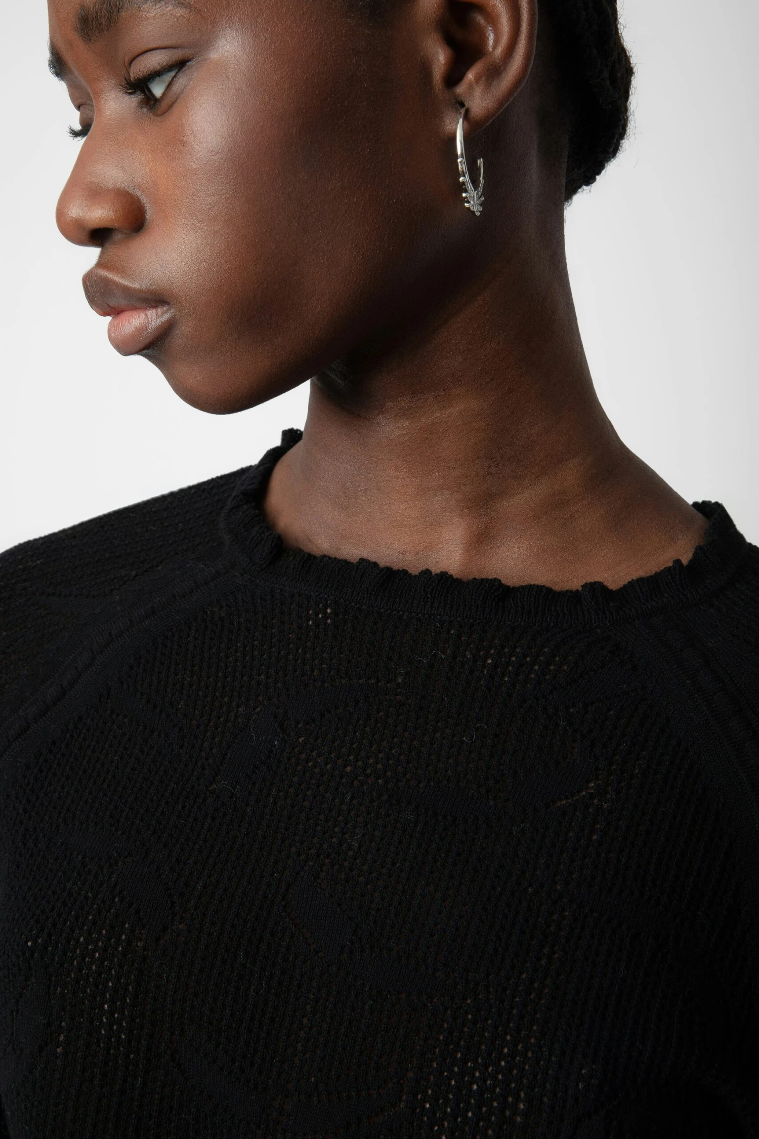 Women’s black cropped knit sweater.