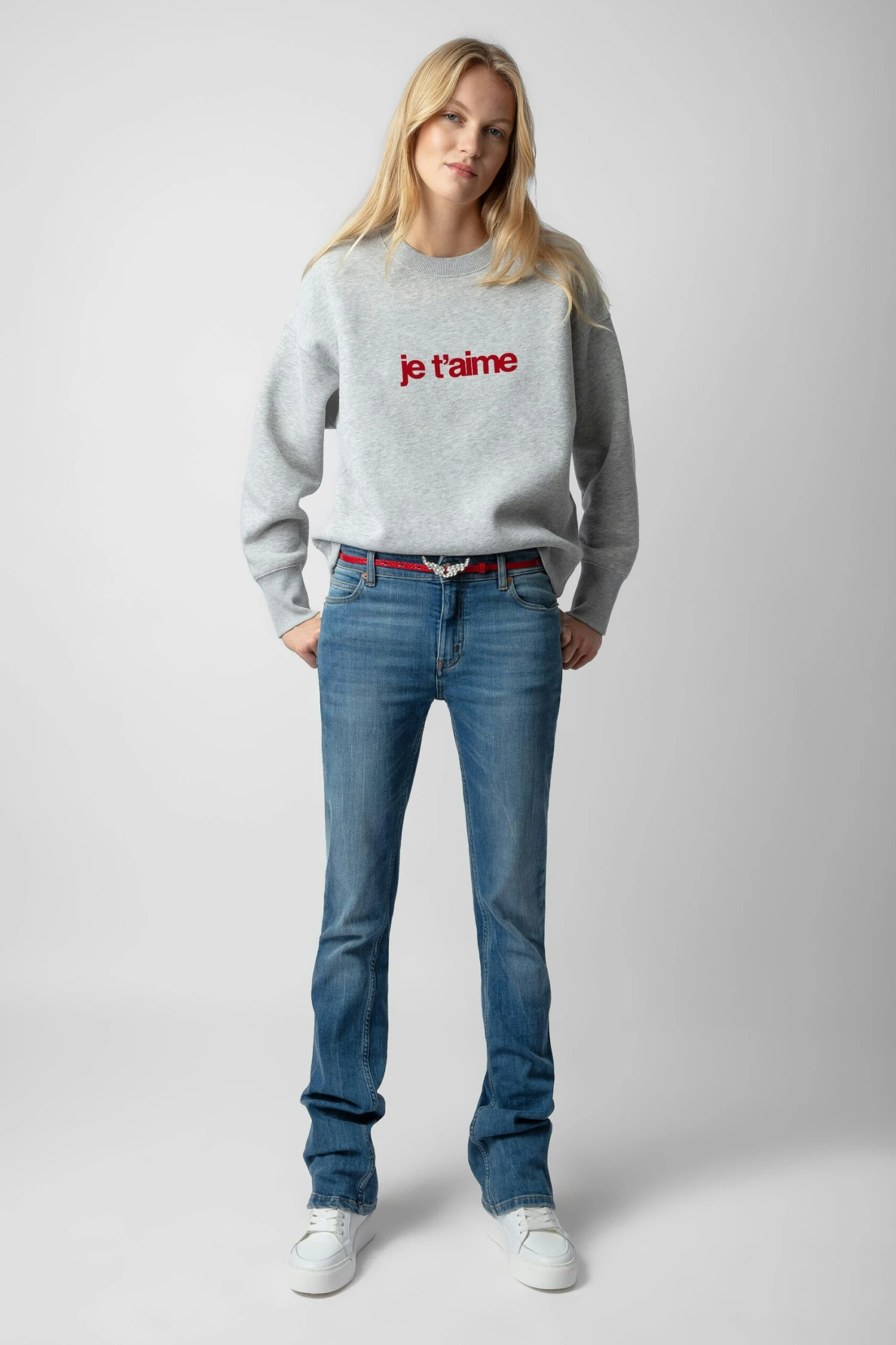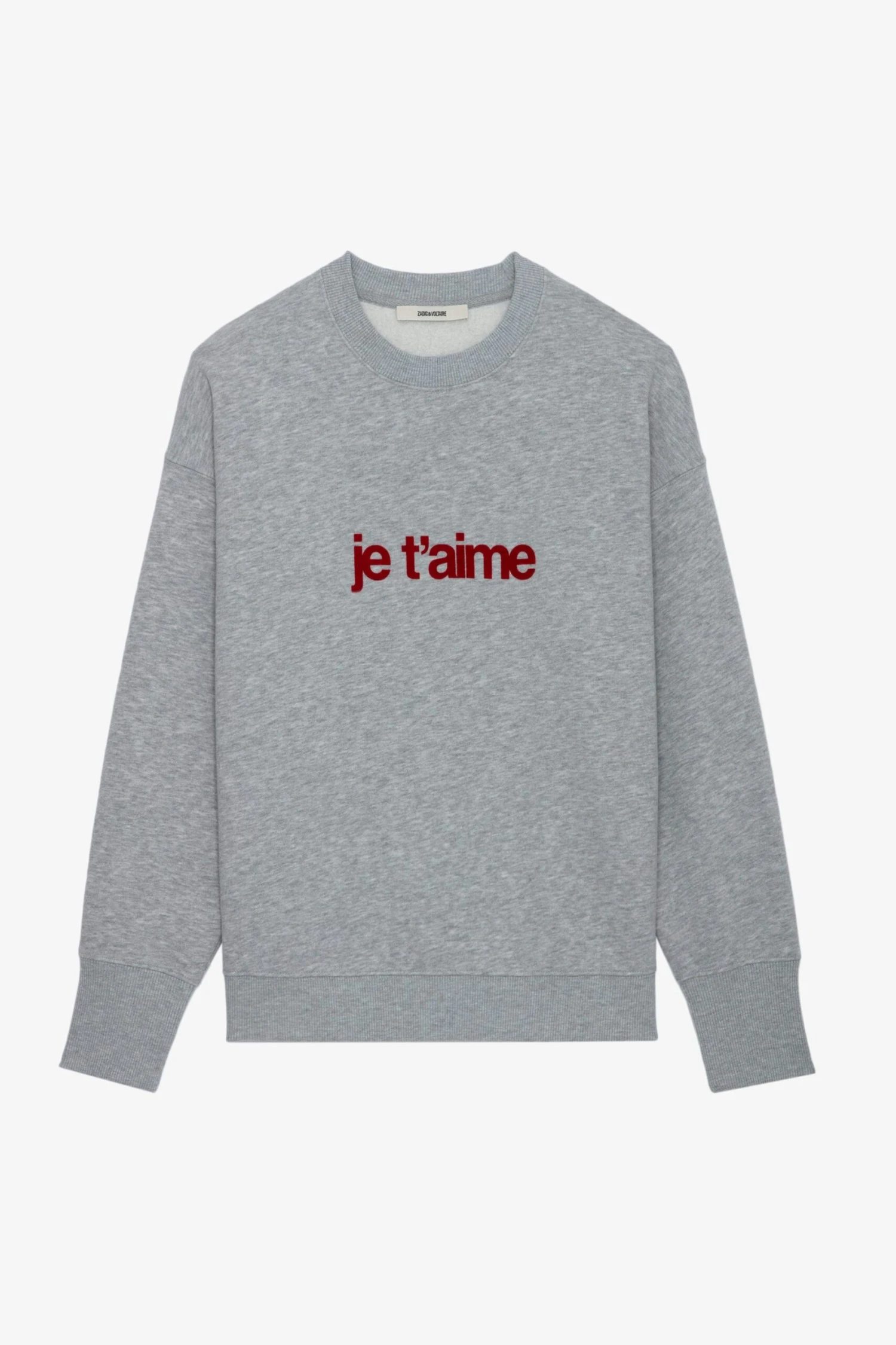 – Women’s light grey marl sweatshirt – Contrasting “Je t’aime” flocked slogan – Round neckline, long sleeves and ribbed trim Model is 180 cm / 5′ 10″ and is wearing a size S*Contains 51% organically grown cottonOCS certification guarantees the presence and the quantity of organic material in the product. It also ensures the end-to-end traceability of the organic material through the supply chain.