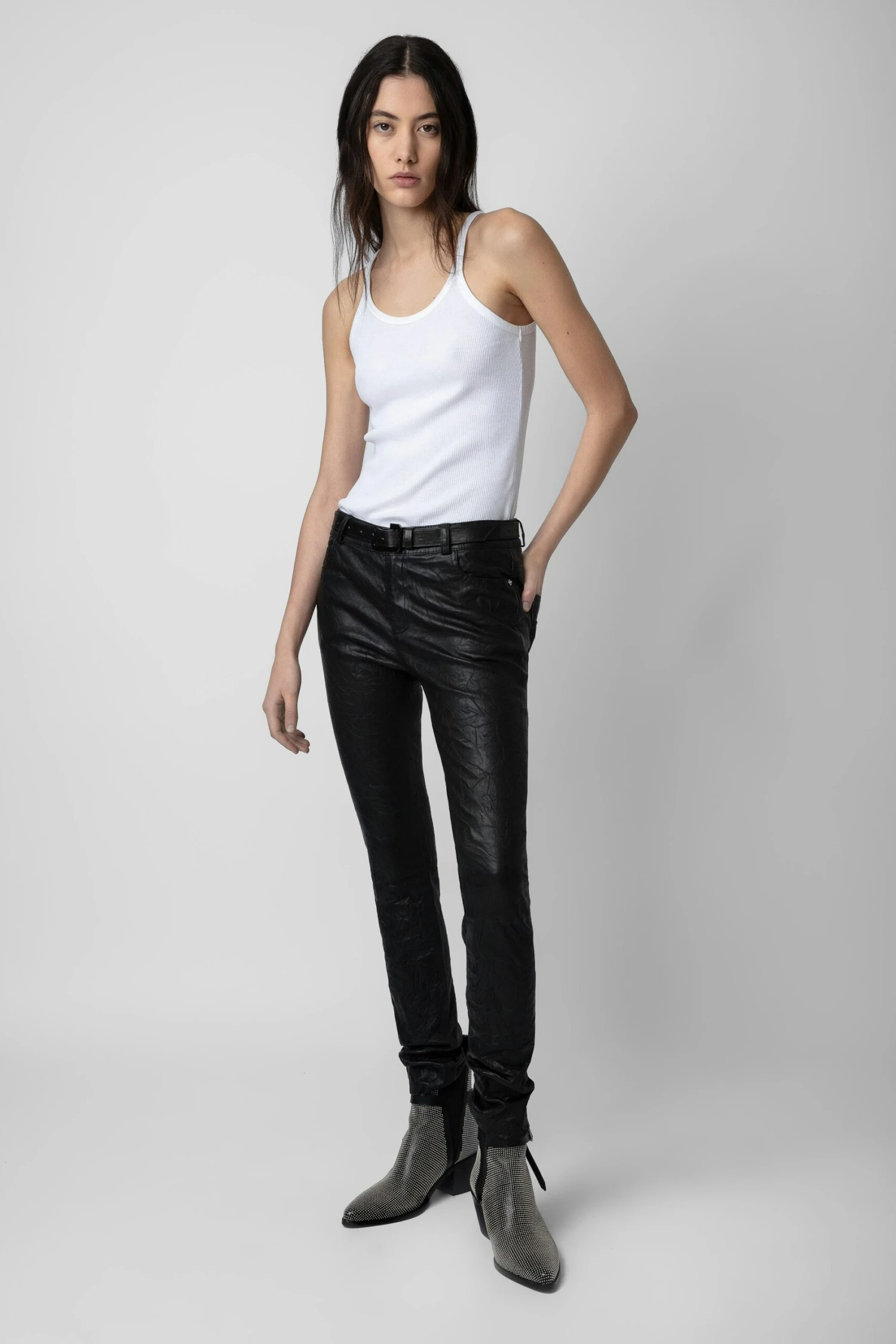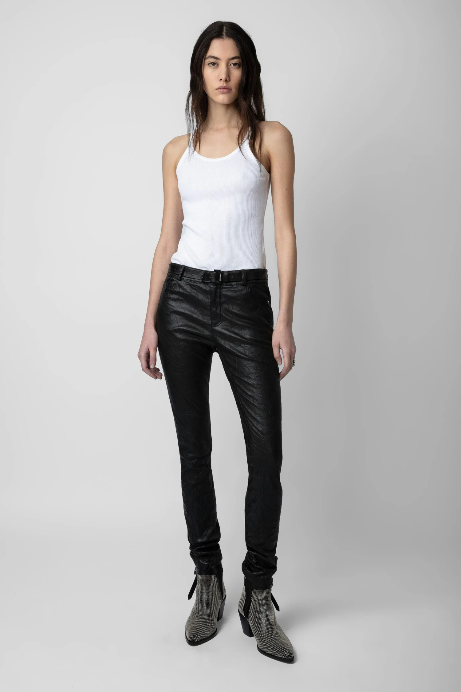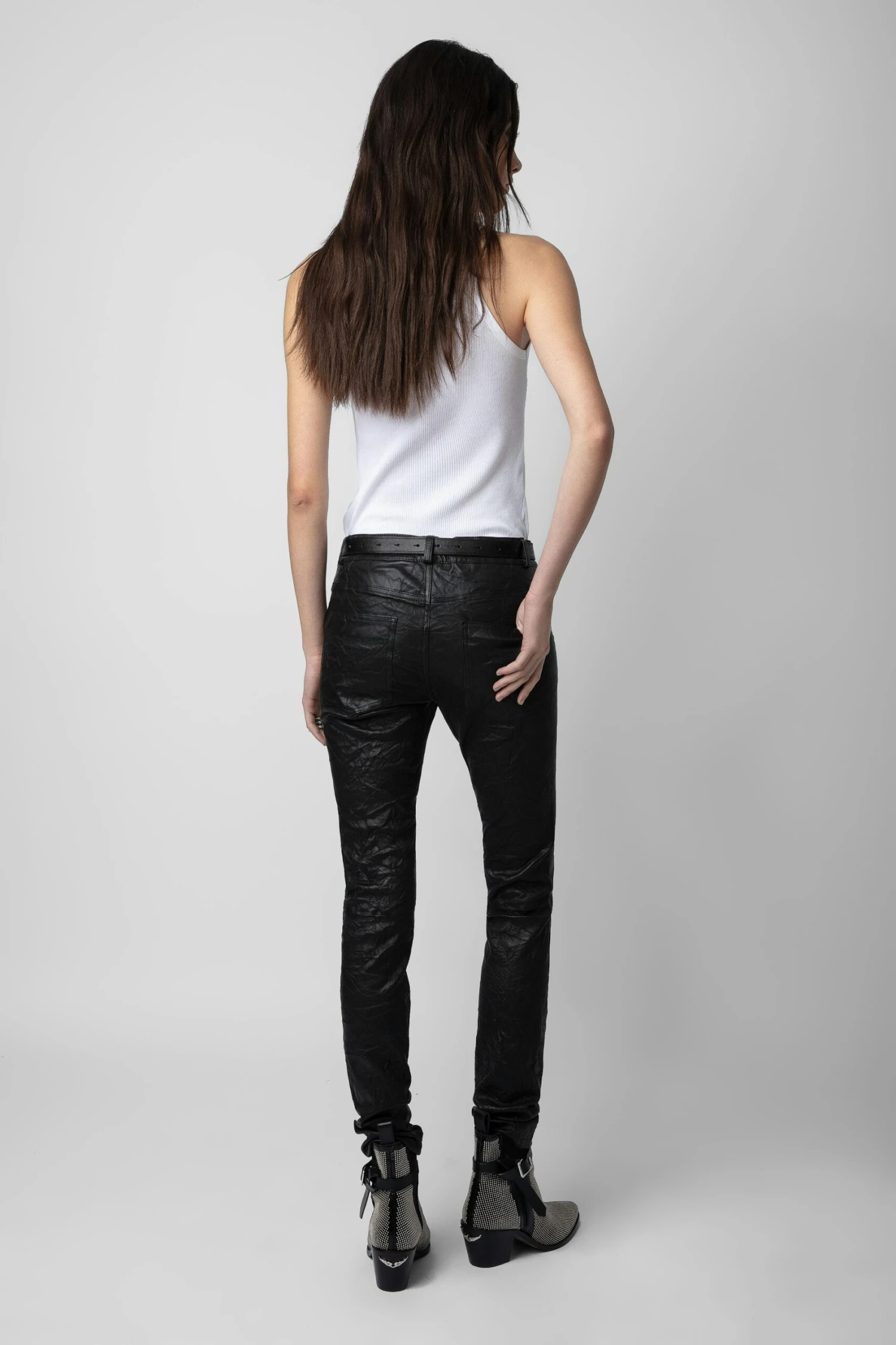 An iconic piece in the Zadig&Voltaire wardrobe, these crinkled leather pants are available in black. A must-have that works with every style. – Zadig&Voltaire Women’s pants in black crinkled leather – Button and zip closure – Belt loops at the waist – 5 pockets – Zadig&Voltaire’s signature material, crinkled leather, is obtained by means of a multi-step process developed by the Maison, guaranteeing a unique product that incorporates exceptional know-howModel is 178 cm / 5′ 10″ and is wearing a size 36The Leather Working Group/LWG is a membership organization comprised of brands, suppliers, leather manufacturers and other stakeholders within the leather manufacturing industry. The group has developed an auditing program which certifies leather manufacturing facilities based on their environmental compliance and performance capabilities