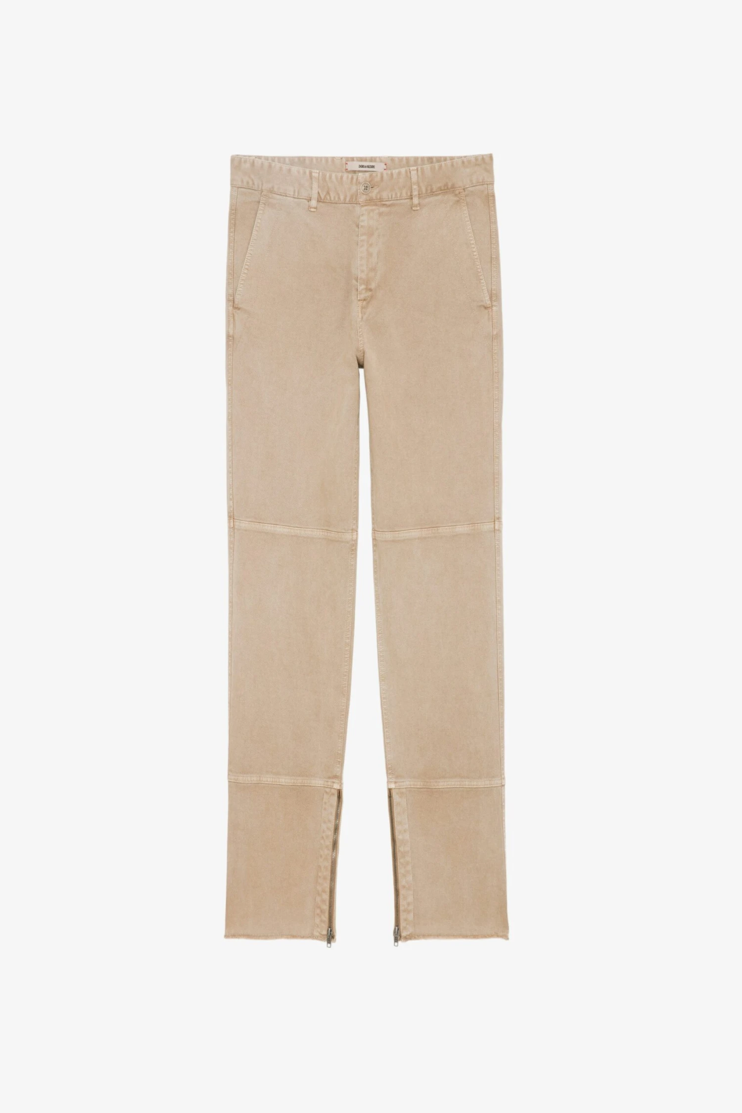– Men’s Light Beige cotton straight-cut pants – Zip and button fly and belt loops at the waist – Overstitched details, zipped hem and raw edges – 2 side pockets and 2 piped pockets on the back – Made in Portugal Model is 186 cm / 6′ 1″ and is wearing a size 38