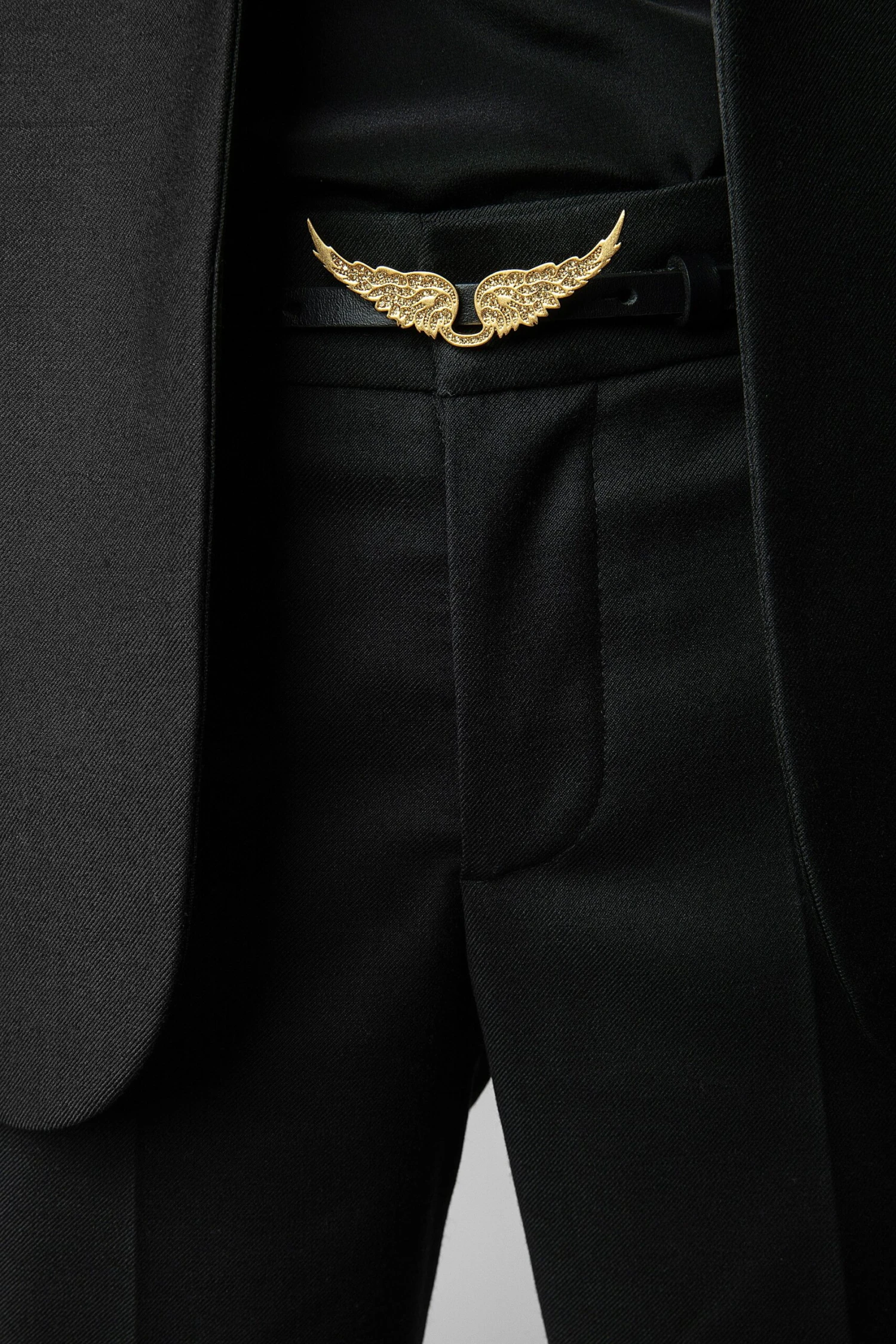 The wings on this black leather belt, symbols of the Zadig&Voltaire brand, transform into a buckle. – Zadig&Voltaire women’s Rock belt in black leather – Wings buckle – Adjustable – Made in FranceThe Leather Working Group/LWG is a membership organization comprised of brands, suppliers, leather manufacturers and other stakeholders within the leather manufacturing industry. The group has developed an auditing program which certifies leather manufacturing facilities based on their environmental compliance and performance capabilities