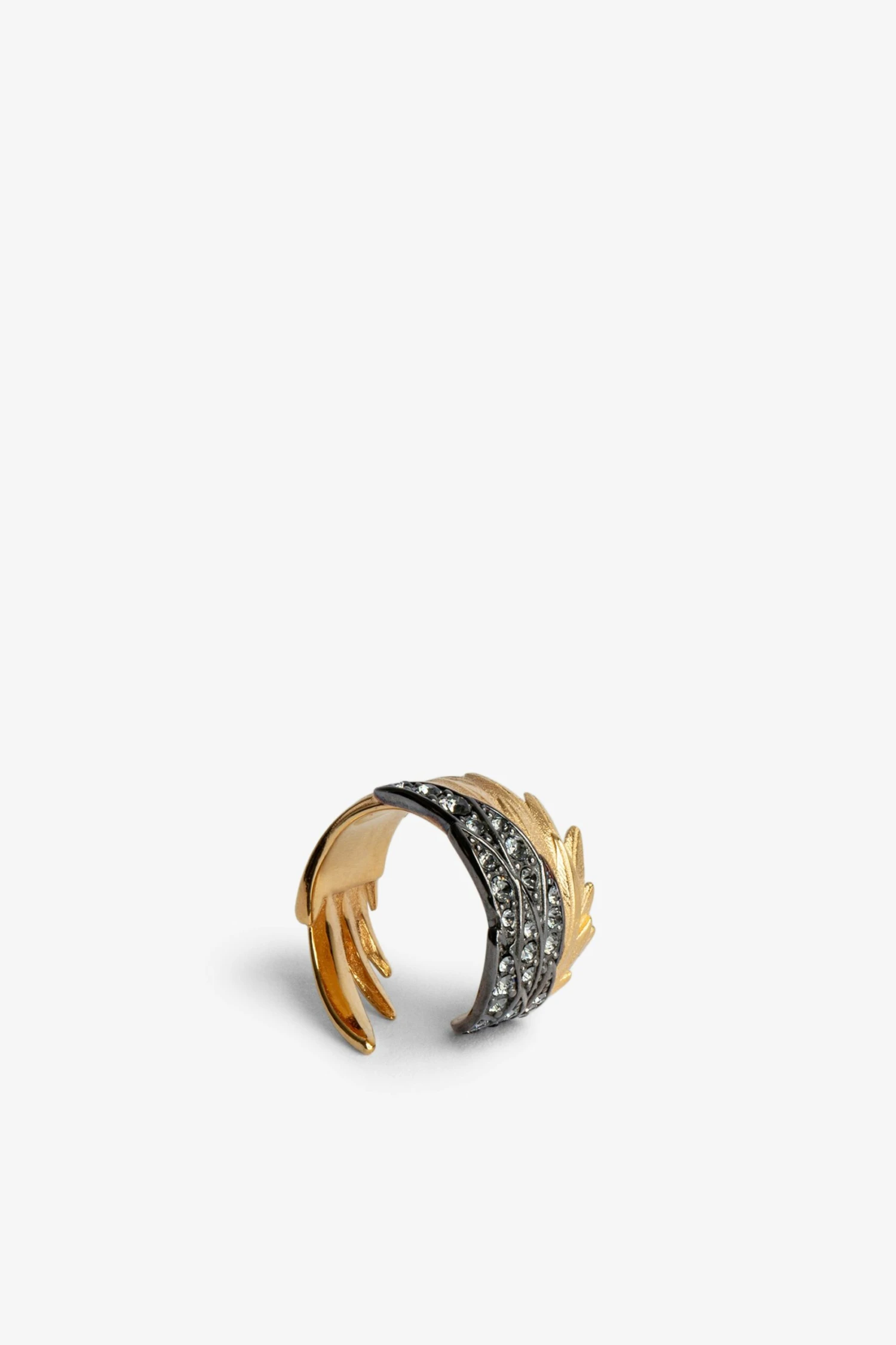 Blackened and gold-tone brass ring with wings, delicately embellished with crystals on one side. – Zadig&Voltaire women’s blackened and gold-tone brass ring -Made from 80% recycled brass – Crystal-embellished -Made in Thailand -Product code: OWJW00536_OLD GOLD u003Cpu003ESizes:u003Cu002Fpu003E u003Cpu003E1- US 5u003Cu002Fpu003E u003Cpu003E2- US 6u003Cu002Fpu003E u003Cpu003E3- US 7u003Cu002Fpu003E