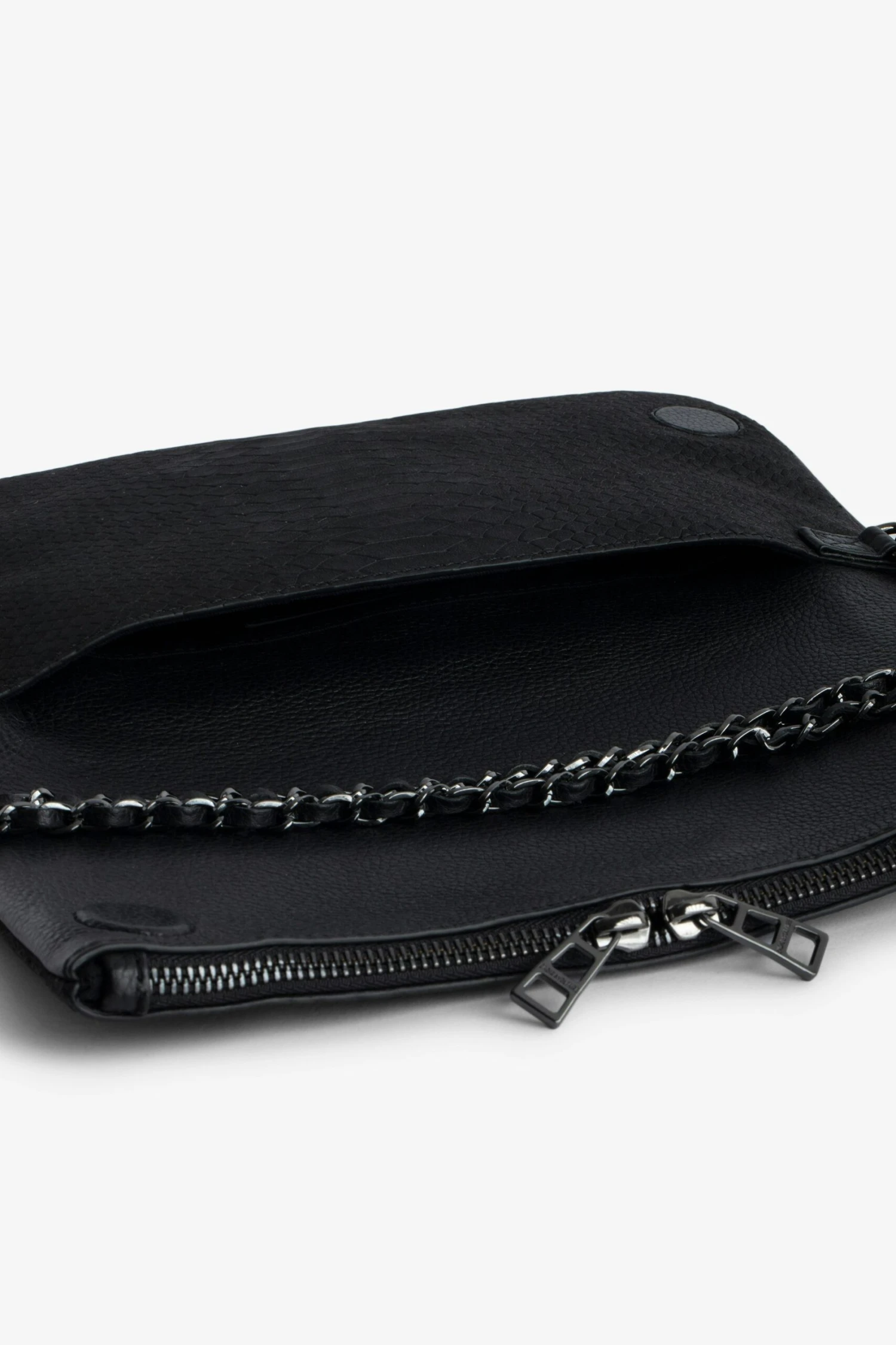 Women’s clutch in black python-effect leather with double leather-and-metal chain