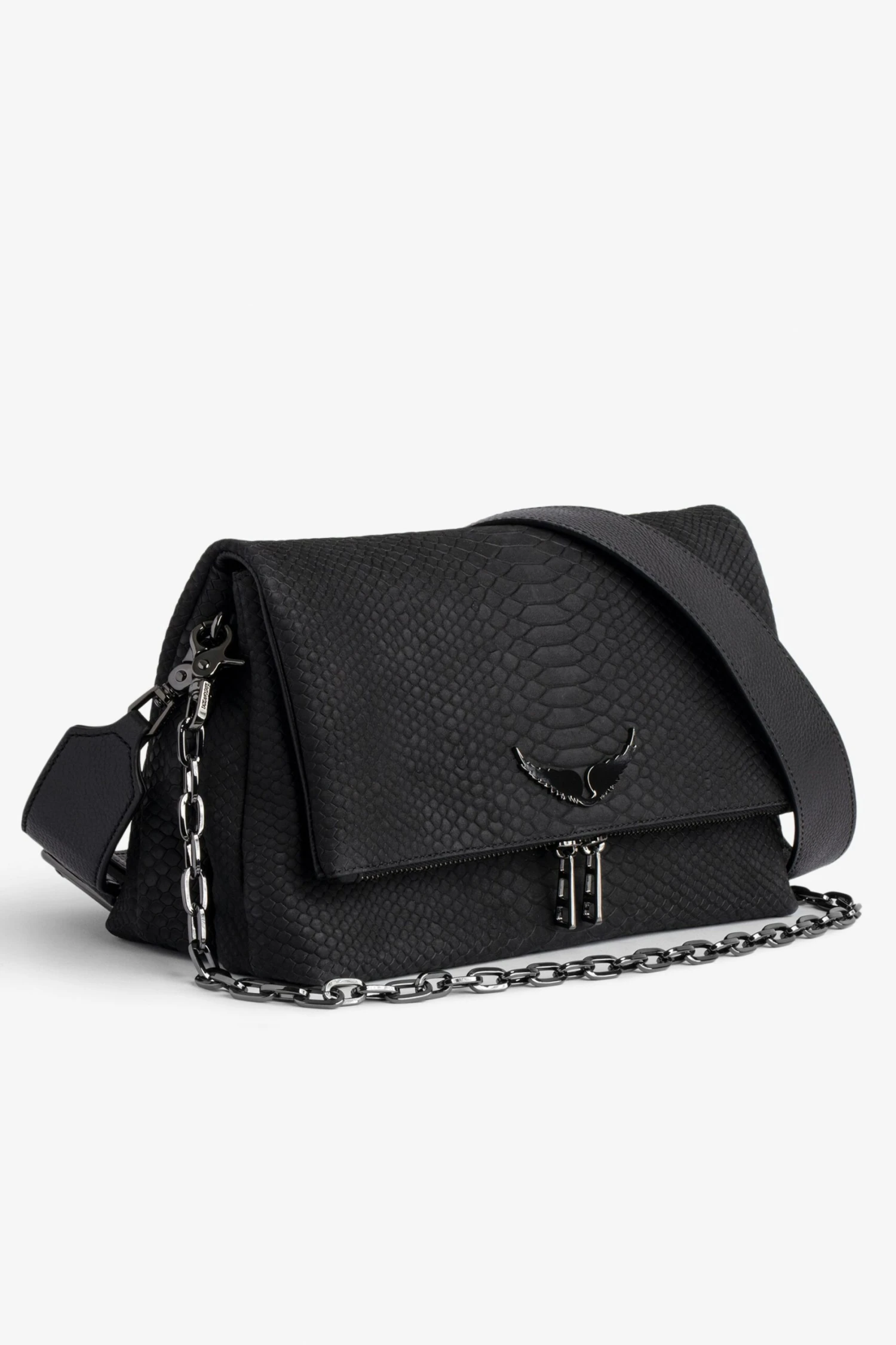 The iconic Rocky can be carried as a shoulder bag or clutch, as you wish. Urban with its leather strap, chic with its black metal chain, it can be carried anywhere. – Women’s Zadig&Voltaire Rocky bag in black python-effect leather – Zip fastening – Adjustable and detachable leather strap – Detachable black metal chain – Can be carried as a shoulder or crossbody bag – Multiple compartments including a large zipped inner compartment – Back zipped pocket – Wings charm The Leather Working Group/LWG is a membership organization comprised of brands, suppliers, leather manufacturers and other stakeholders within the leather manufacturing industry. The group has developed an auditing program which certifies leather manufacturing facilities based on their environmental compliance and performance capabilities