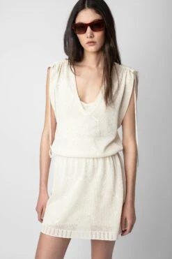 – Women’s Vanille ecru flowing blouse – Silk with Twisted Garden print – Round neckline, button closure and pleat details – 3u002F4-length sleeves and buttoned cuffs with diamanté motifs Model is 178 cm / 5′ 10″ and is wearing a size S