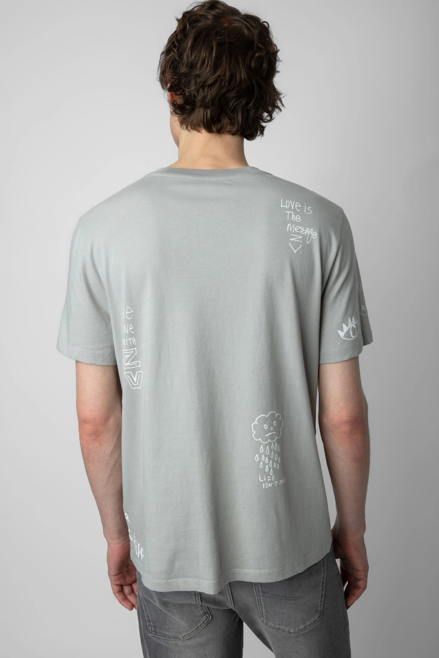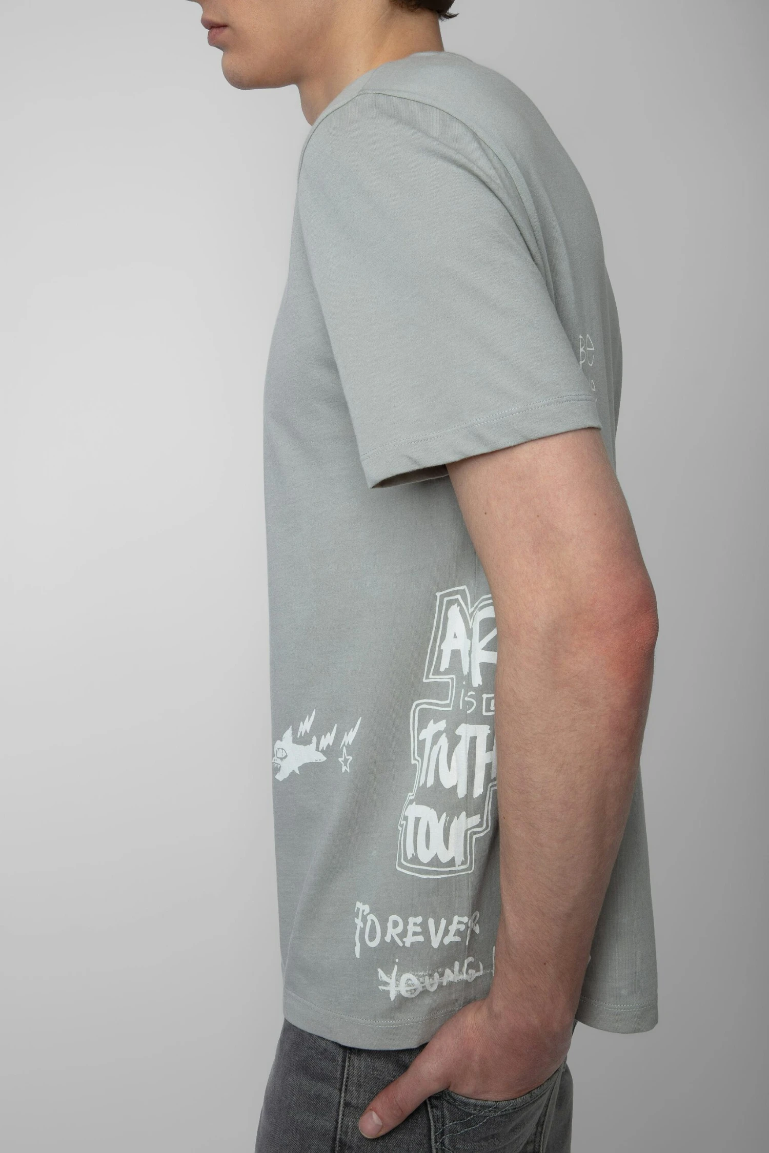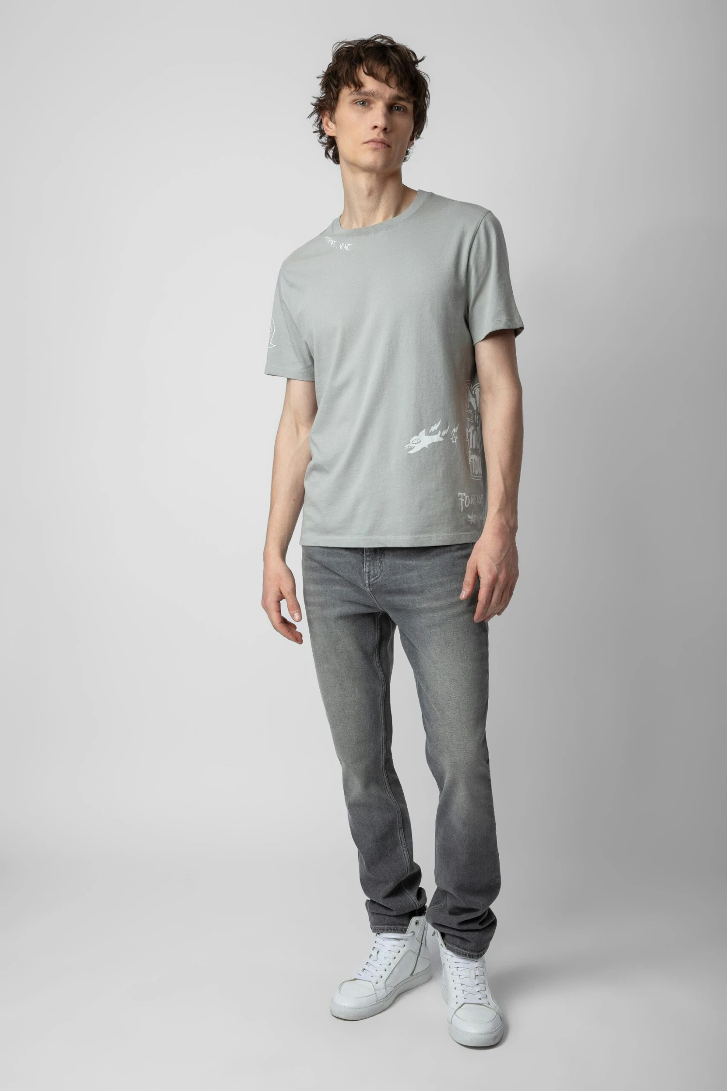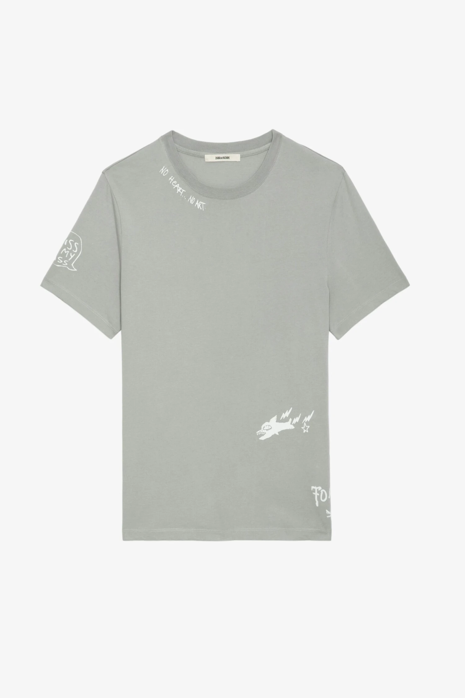 Grey organic cotton T-shirt with customized details designed by Humberto Cruz.
