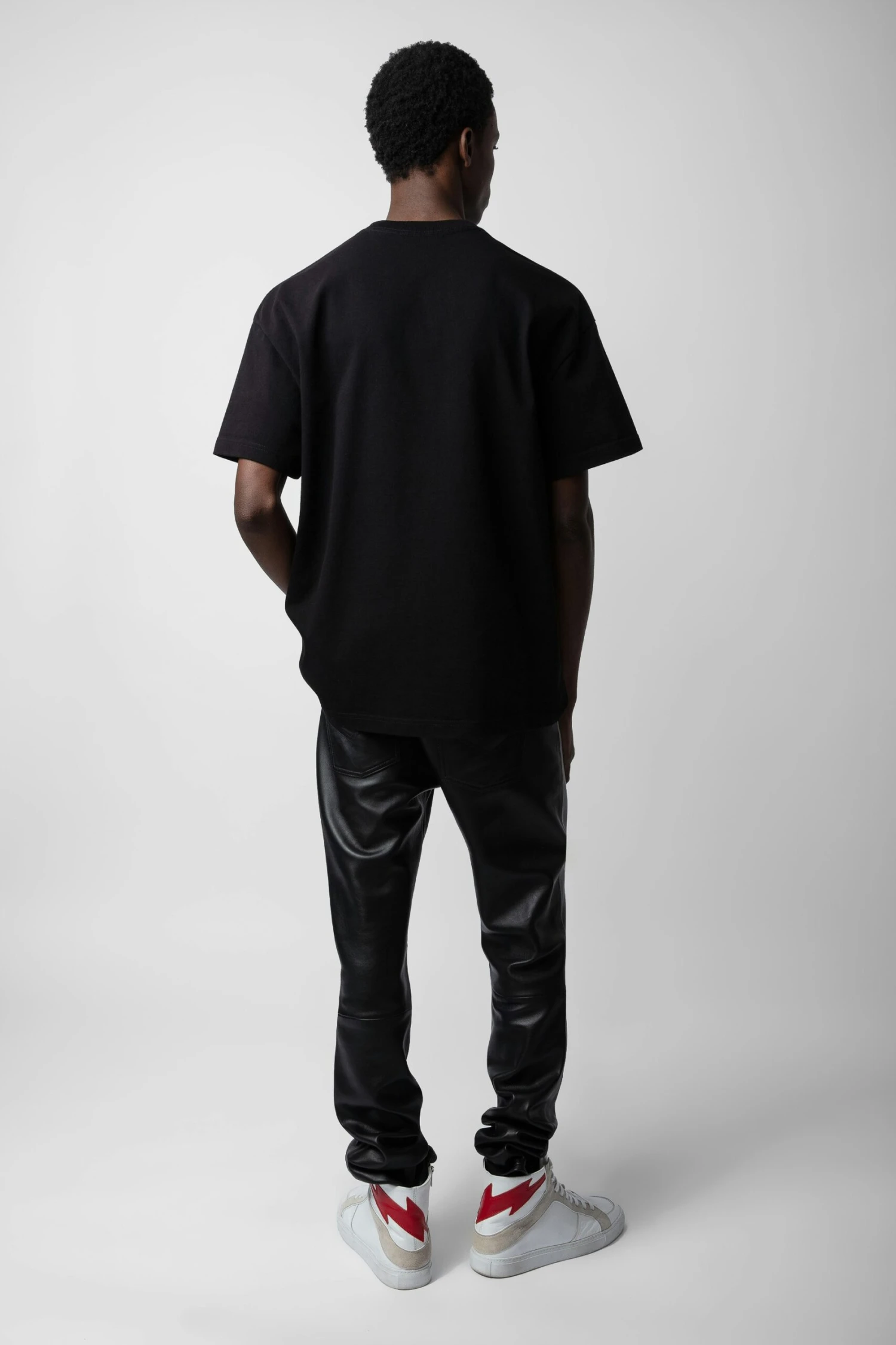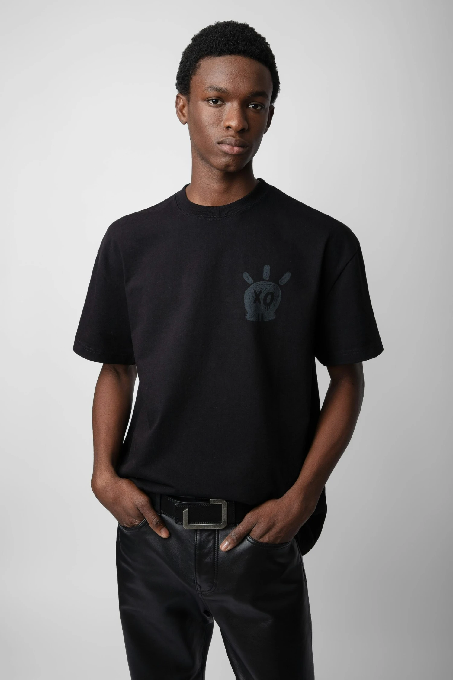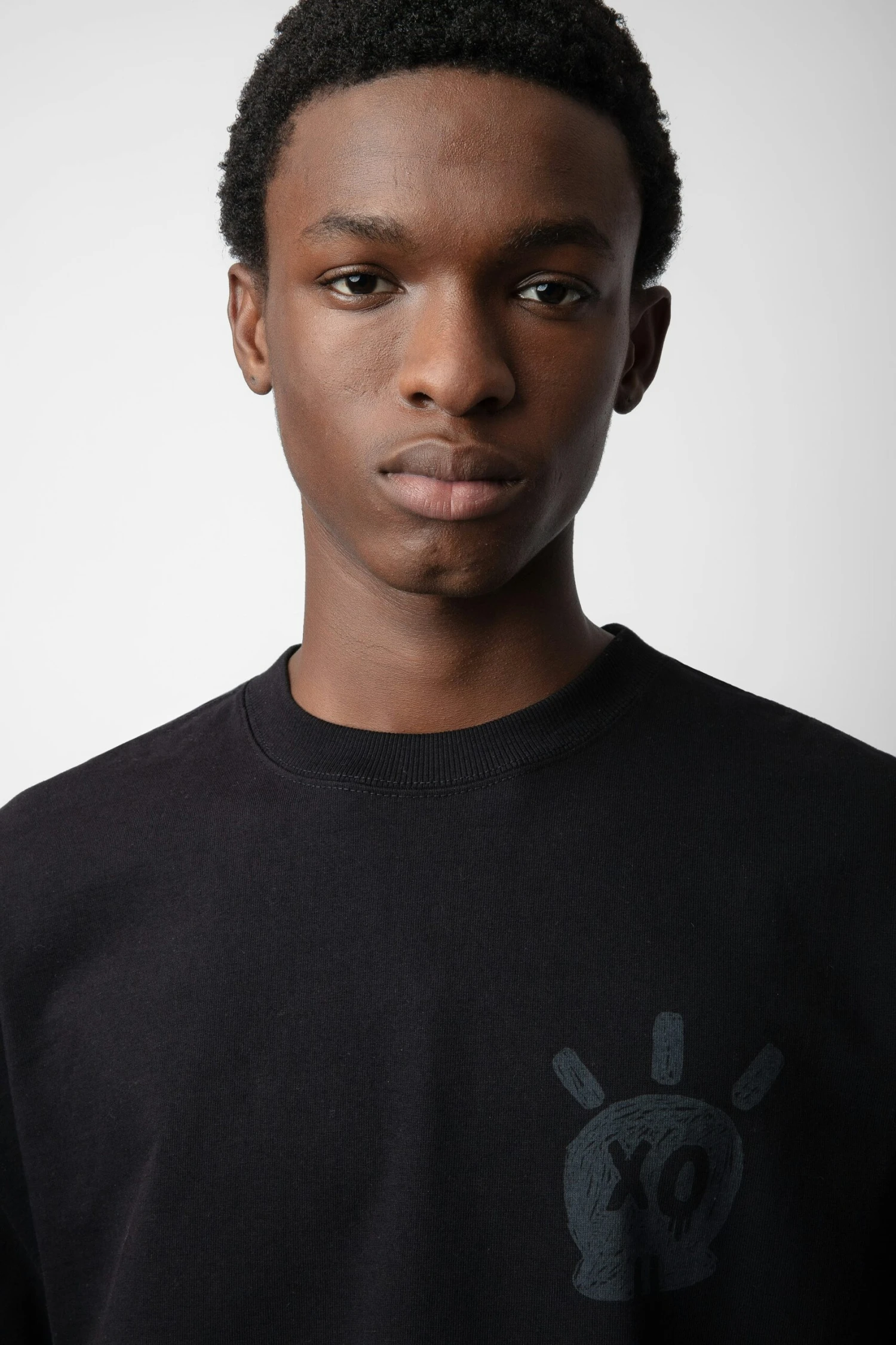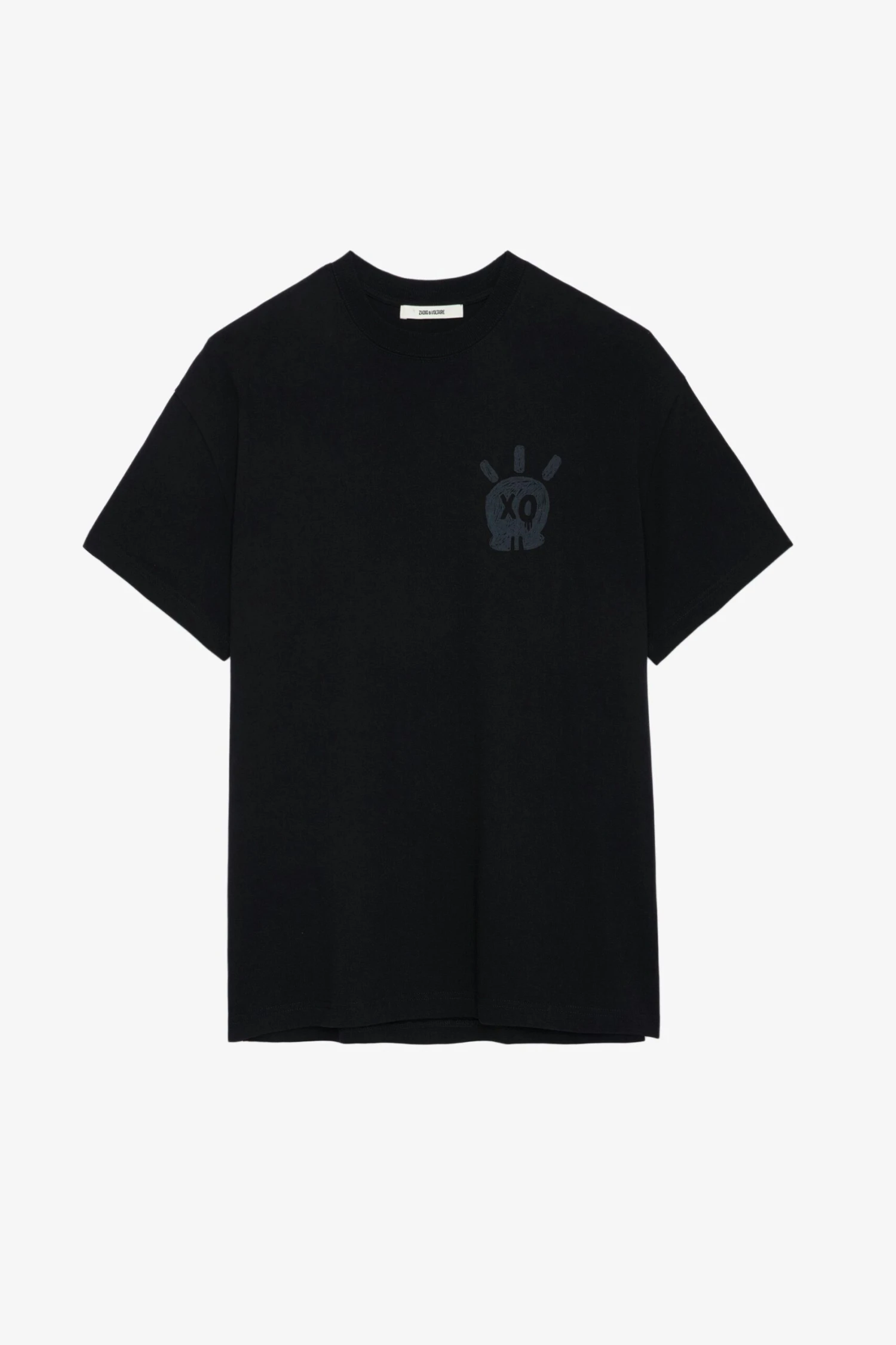 Black cotton round-neck T-shirt with short sleeves and Skull XO print.