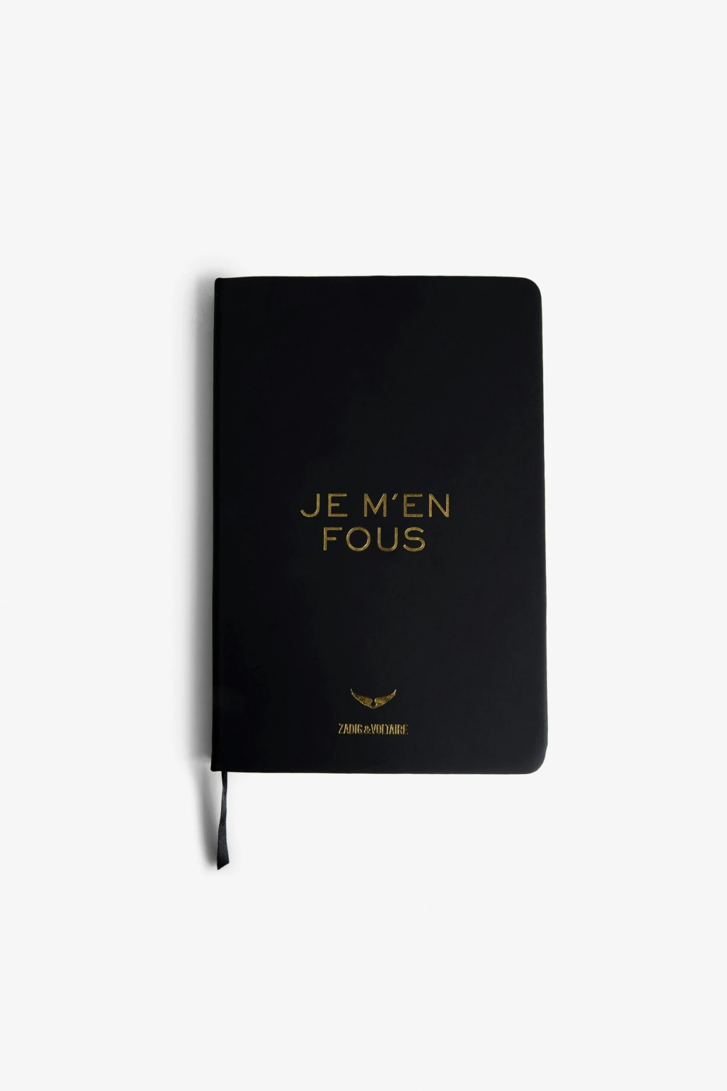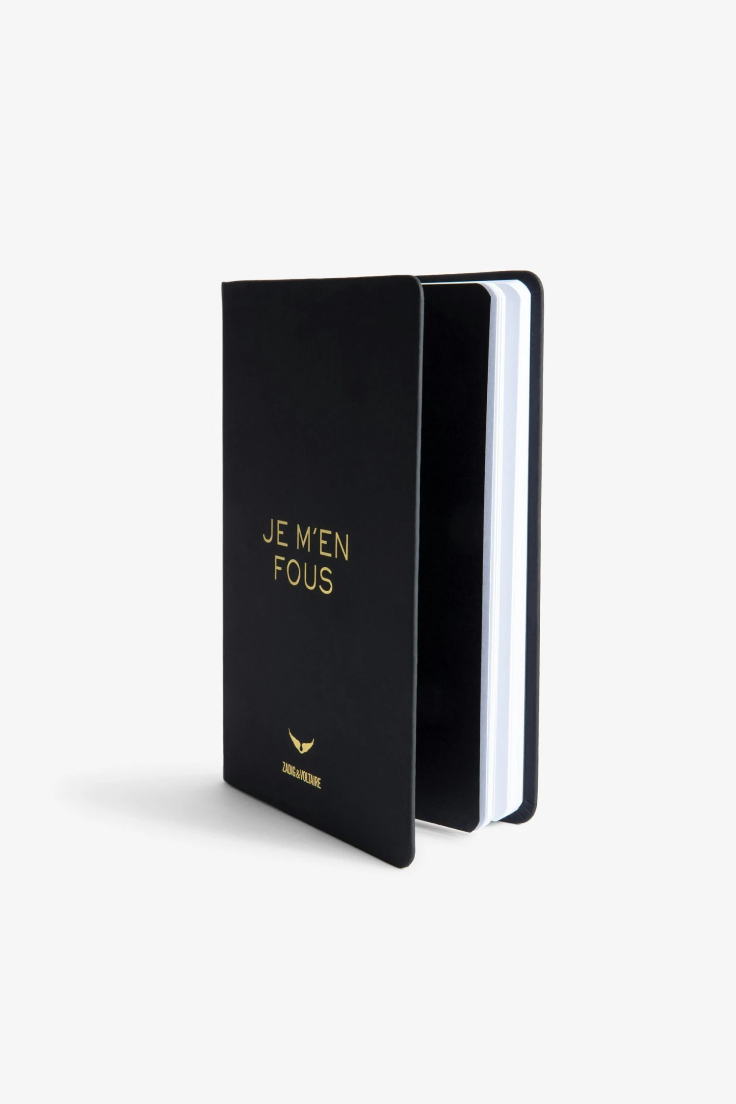 The Write Stuff notebook is part of the VOLTAIRE VICE capsule. Zadig&Voltaire is experimenting with a new creative space, where freedom is the watchword. The brand is adding its signature to everyday objects that are both practical and decorative, where design is as important as purpose. – Black notebook 190 pages – Paper pages and bookmark – “Je m’en fous” and “The Write Stuff” slogans, gold wings motif and Zadig&Voltaire signature – Dimensions : 14,8 x 21 cm