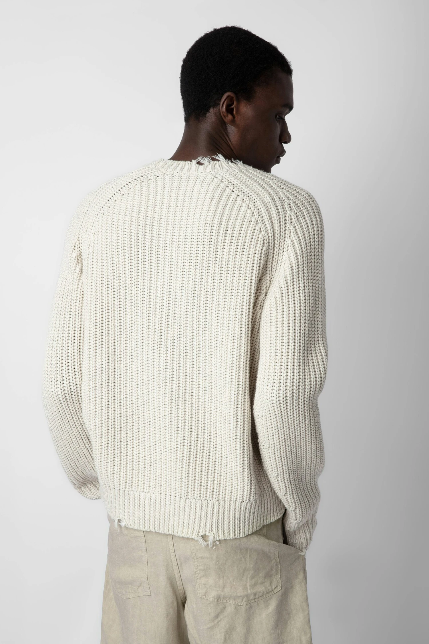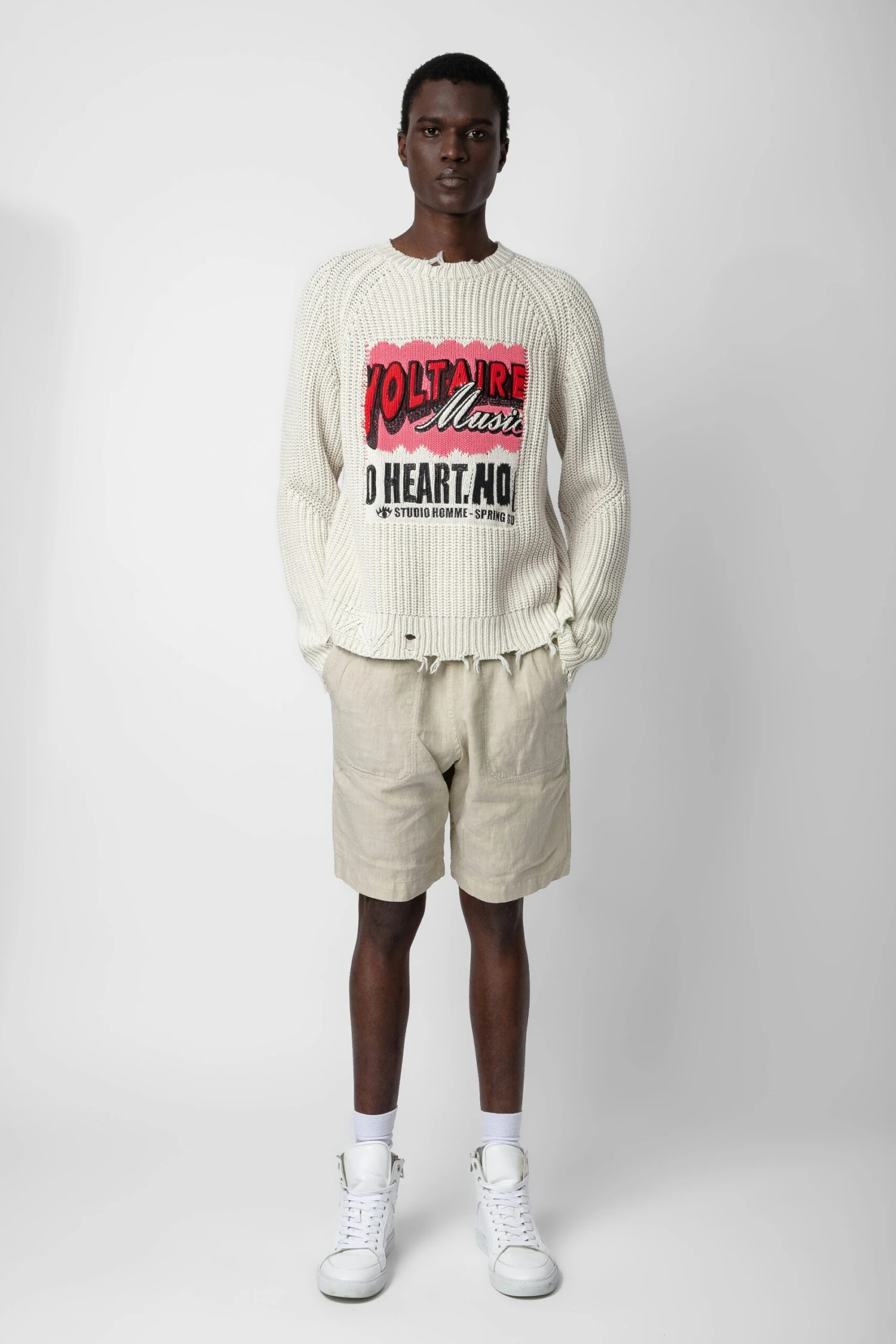 – Men’s Naturel light grey cotton sweater – Voltaire Music motif in intarsia jacquard on the front – Openwork details and pointelle ZV signature – Round neckline, long sleeves and distressed-effect ribbed raw trim Model is 186 cm / 6′ 1″ and is wearing a size M/L*100% of fibers comes from organic agricultureThe GOTS certification guarantees that this product does not contain GMOs. It also ensures the absence of harmful substances in the product, a social and environmental responsible management and the end-to-end traceability of the supply chain. The dyes are made with GOTS approved inks and colorants, which do not contain toxic heavy metals and do not require aromatic solvents nor harmful substances.