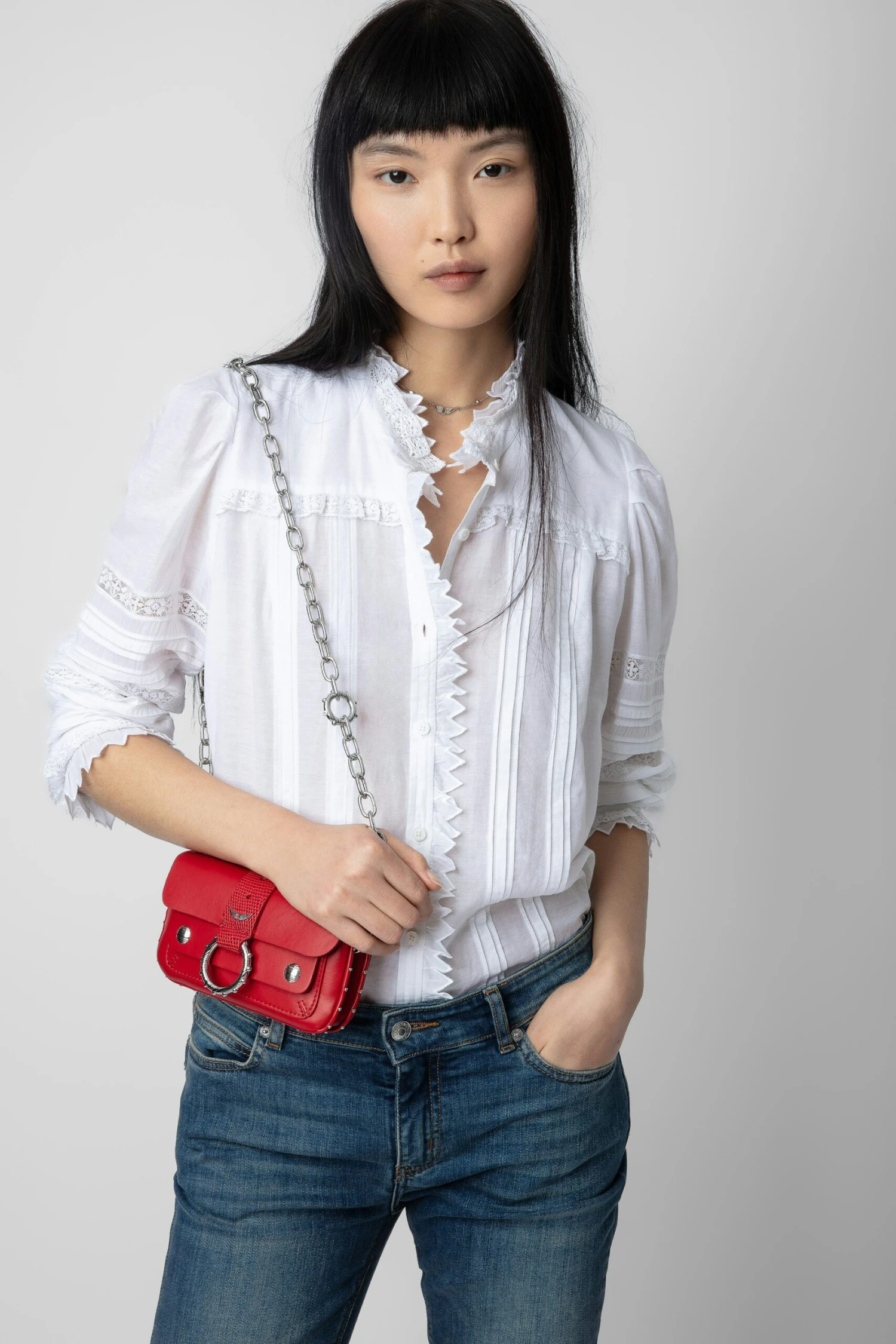 – Women’s Judo white cotton blouse – Mock neck and button closure – Pleats, gathers and lace bands – Long puff sleeves and buttoned cuffs Model is 177 cm / 5′ 9″ and is wearing a size S**Fibers from organic farming