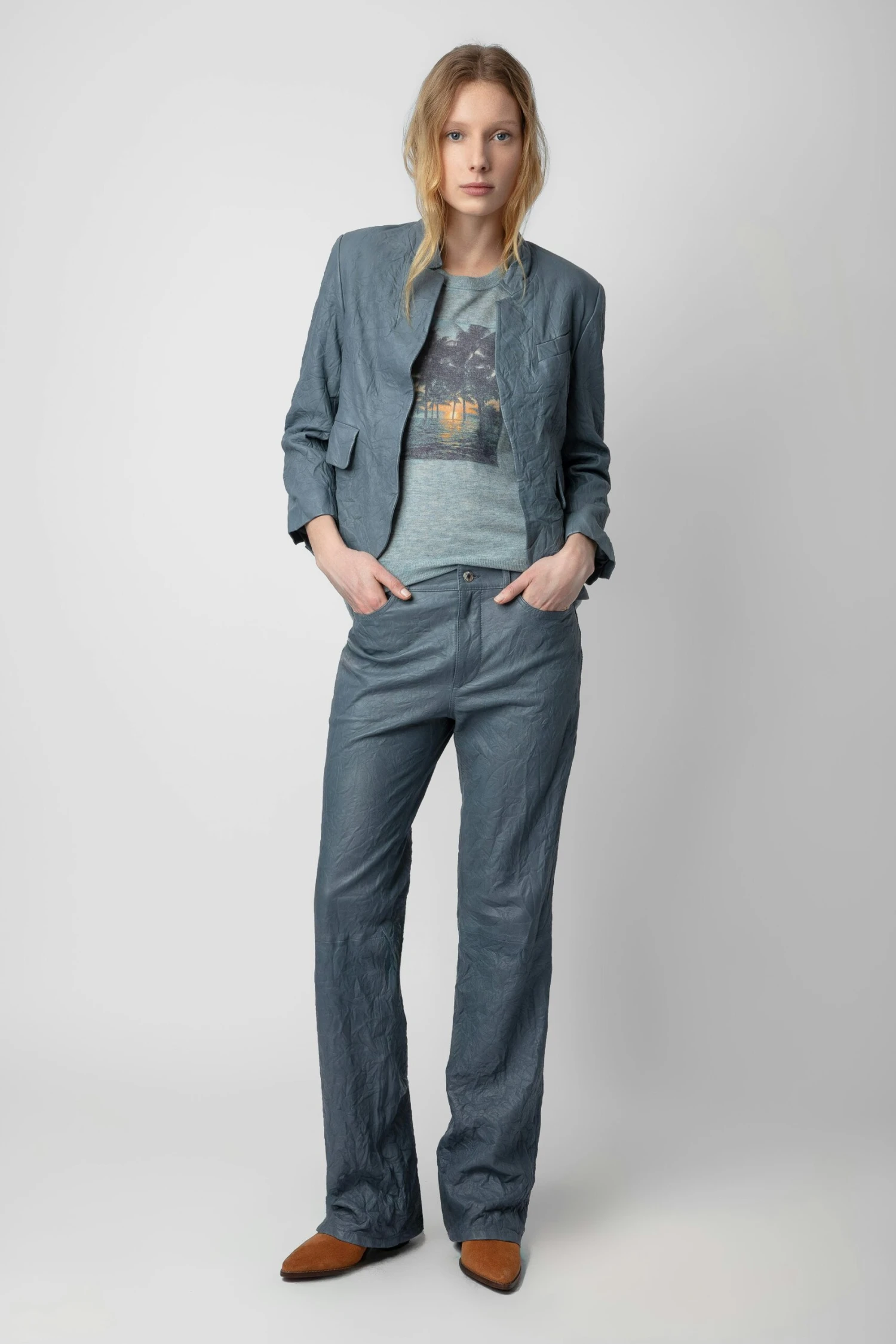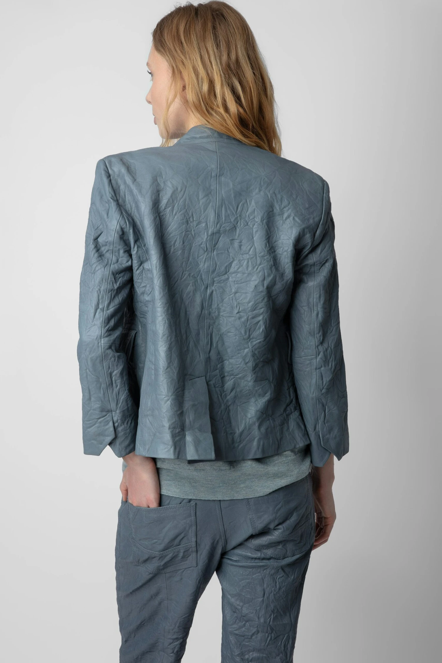 – Women’s Light Blue crinkled leather blazer – 3u002F4-length sleeves – Mock neck – Chest pocket and 2 flap pockets – Zadig&Voltaire’s signature material, crinkled leather, is obtained by means of a multi-step process developed by the brand, guaranteeing a unique product that showcases exceptional know-how. Model is 178 cm / 5′ 10″ and is wearing a size SThe Leather Working Group/LWG is a membership organization comprised of brands, suppliers, leather manufacturers and other stakeholders within the leather manufacturing industry. The group has developed an auditing program which certifies leather manufacturing facilities based on their environmental compliance and performance capabilities