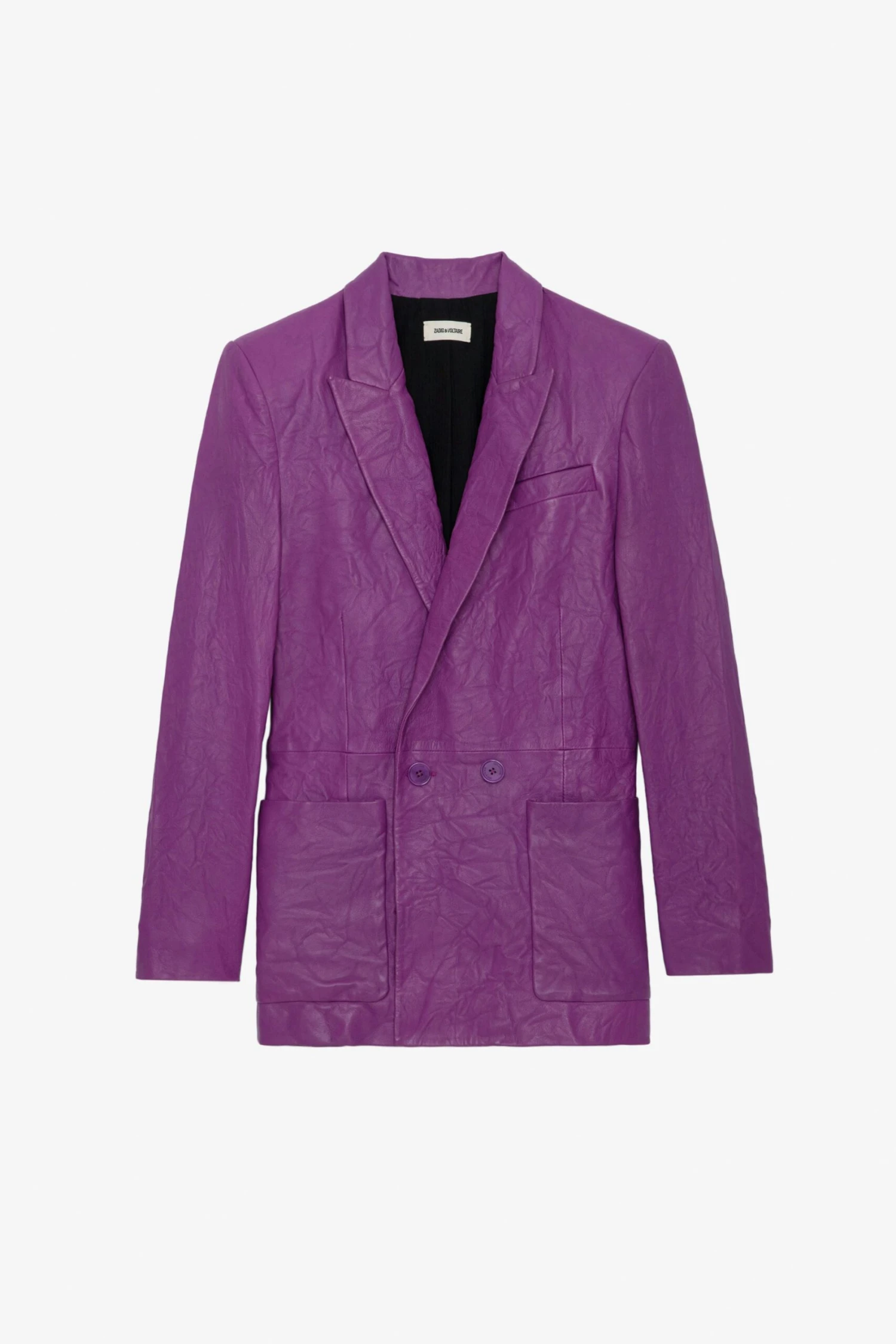 – Women’s Goa purple crinkled leather blazer – Tailored collar and shoulder pads – Double-breasted fastening – 2 pockets and 1 piped pocket – Long sleeves and mitred cuffs – Zadig&Voltaire’s signature material, crinkled leather is obtained by means of a multi-step process developed by the brand, guaranteeing a unique product that showcases exceptional know-how. Model is 170 cm / 5′ 6″ and is wearing a size 36The Leather Working Group/LWG is a membership organization comprised of brands, suppliers, leather manufacturers and other stakeholders within the leather manufacturing industry. The group has developed an auditing program which certifies leather manufacturing facilities based on their environmental compliance and performance capabilities
