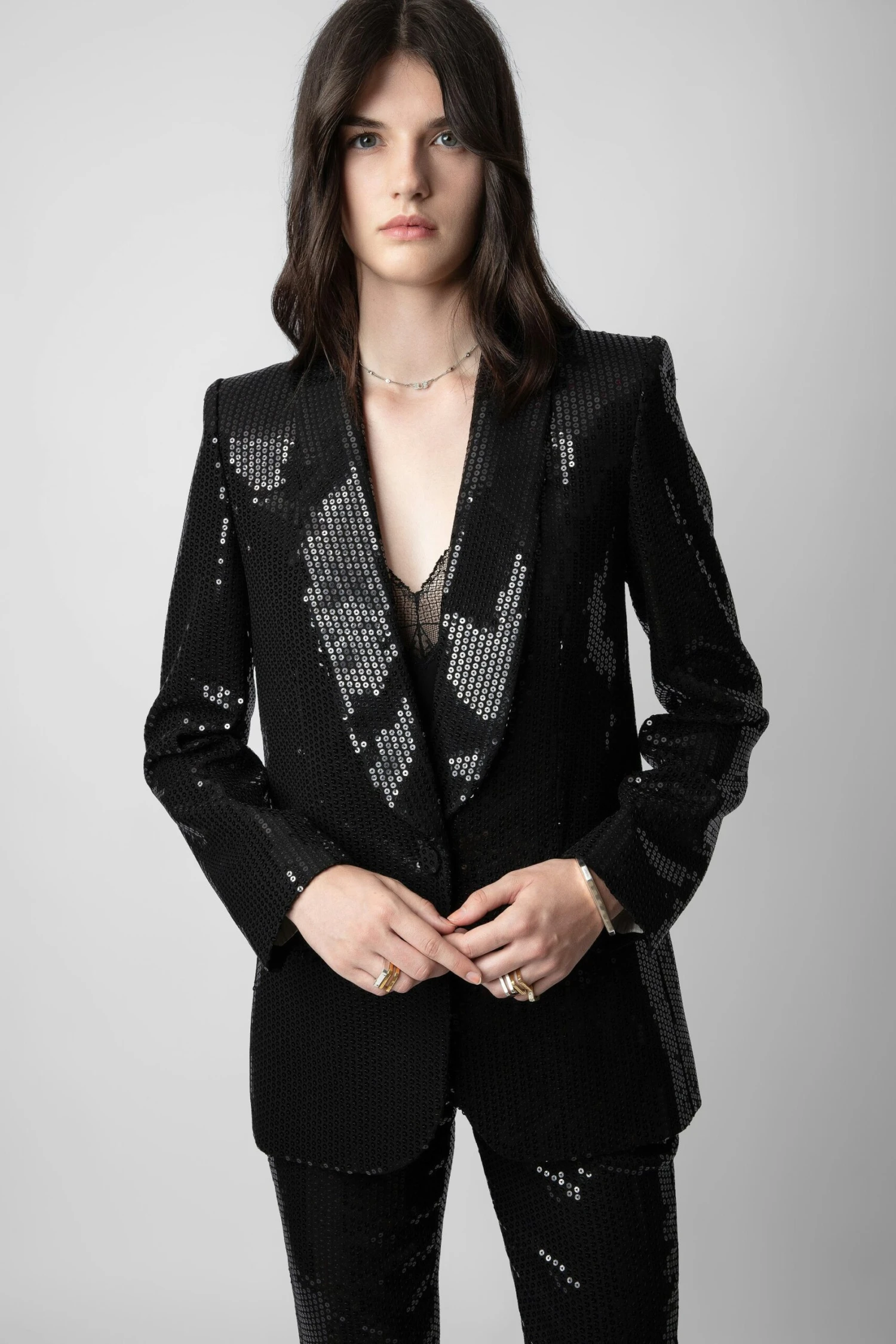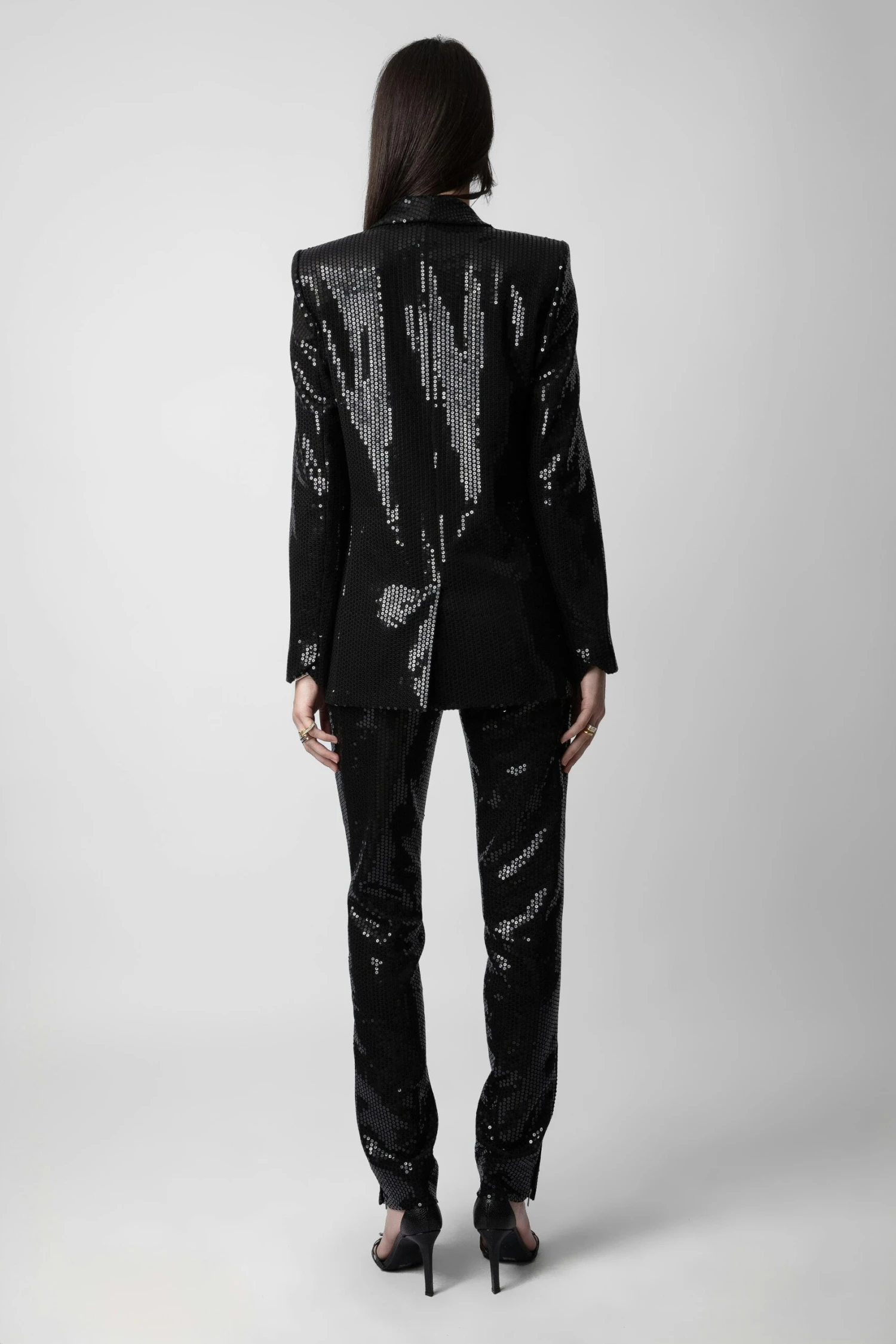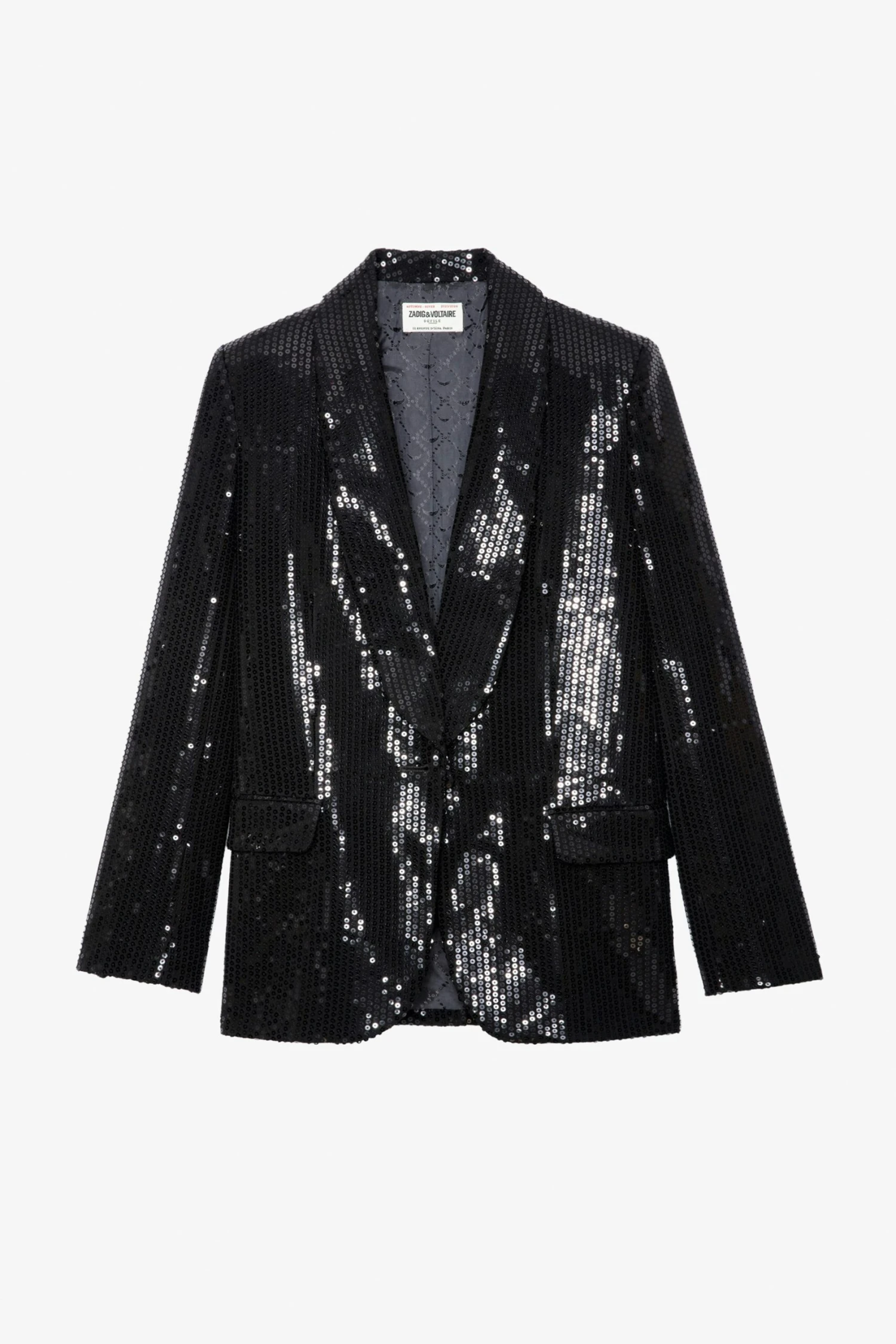 Women’s black tailored blazer with sequins, button fastening and pockets.