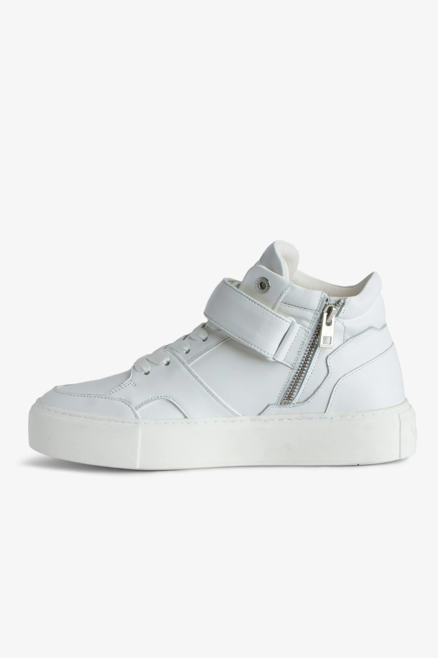 – Women’s white smooth leather mid-top trainers with laces, zip and Velcro fastening – Overstitched panels – Chunky wedge insole: 2.7 cm – Tongue and sole with Zadig&Voltaire branding – Made in Portugal The Leather Working Group/LWG is a membership organization comprised of brands, suppliers, leather manufacturers and other stakeholders within the leather manufacturing industry. The group has developed an auditing program which certifies leather manufacturing facilities based on their environmental compliance and performance capabilities
