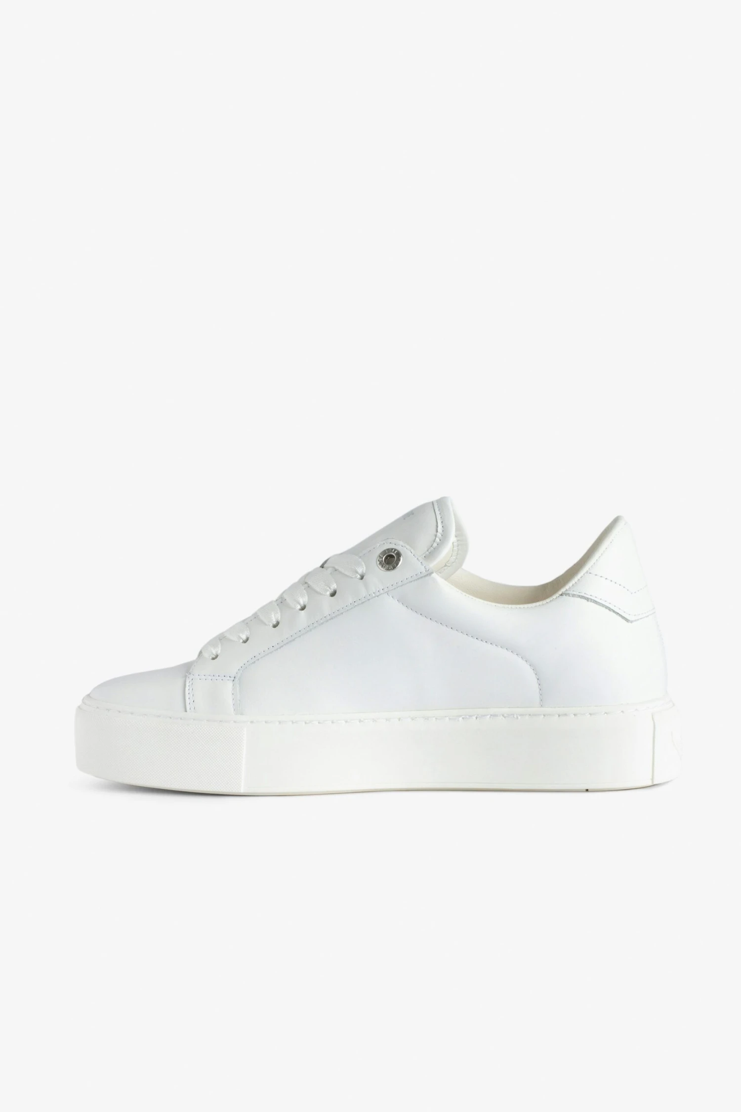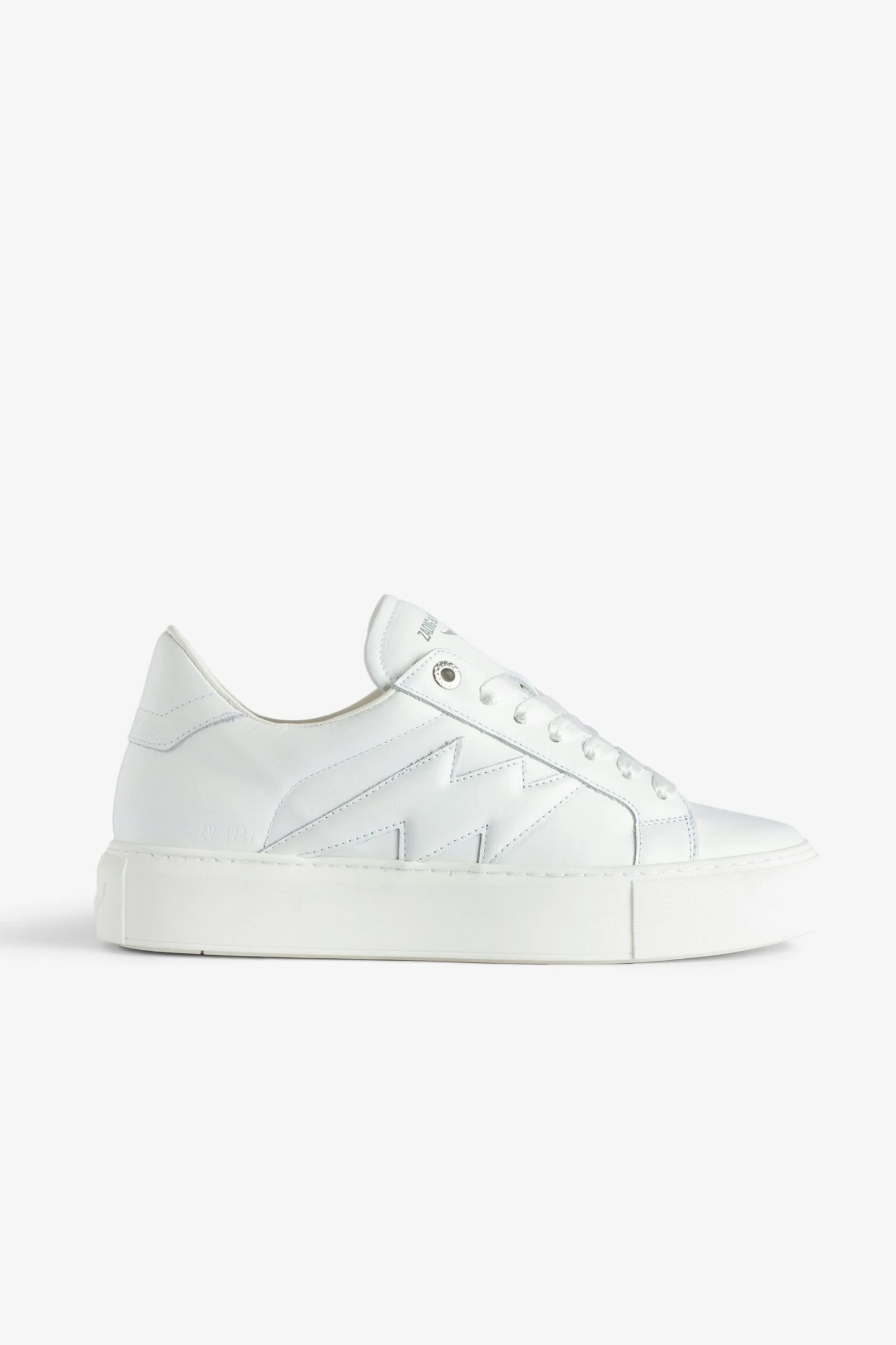 – Women’s white smooth leather lace-up low-top sneakers – Lightning bolt panel – Zadig&Voltaire branded tongue and chunky sole – Made in Portugal The Leather Working Group/LWG is a membership organization comprised of brands, suppliers, leather manufacturers and other stakeholders within the leather manufacturing industry. The group has developed an auditing program which certifies leather manufacturing facilities based on their environmental compliance and performance capabilities